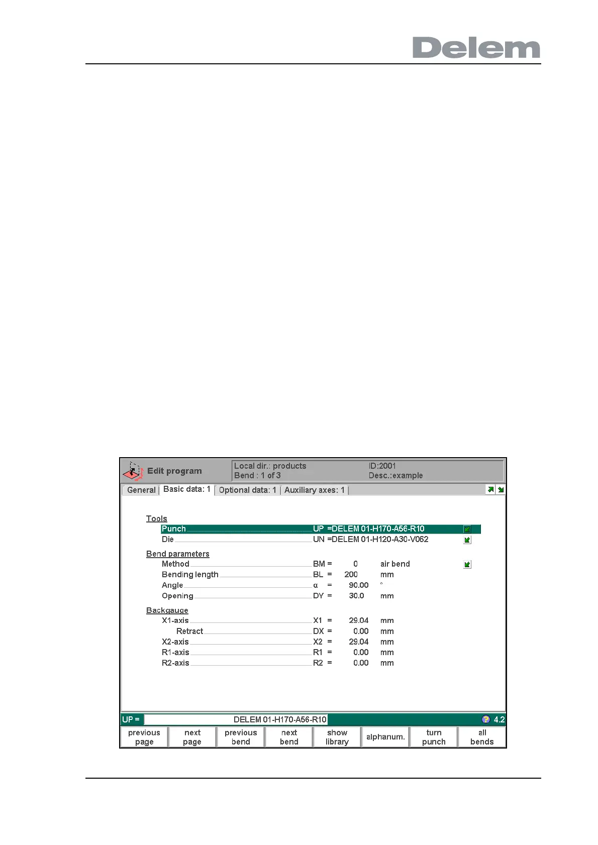 3 Select the program with the bend sequence in the direction which you want to execute in the first