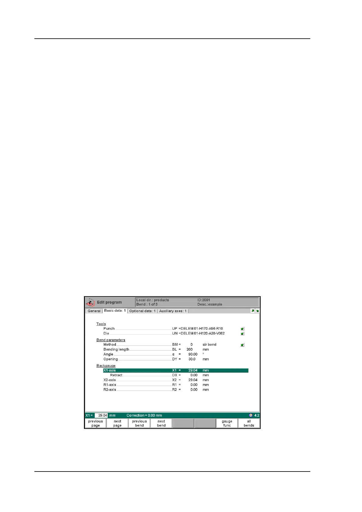 Retract distance of back gauge during the bending. The "backgauge retract" is started