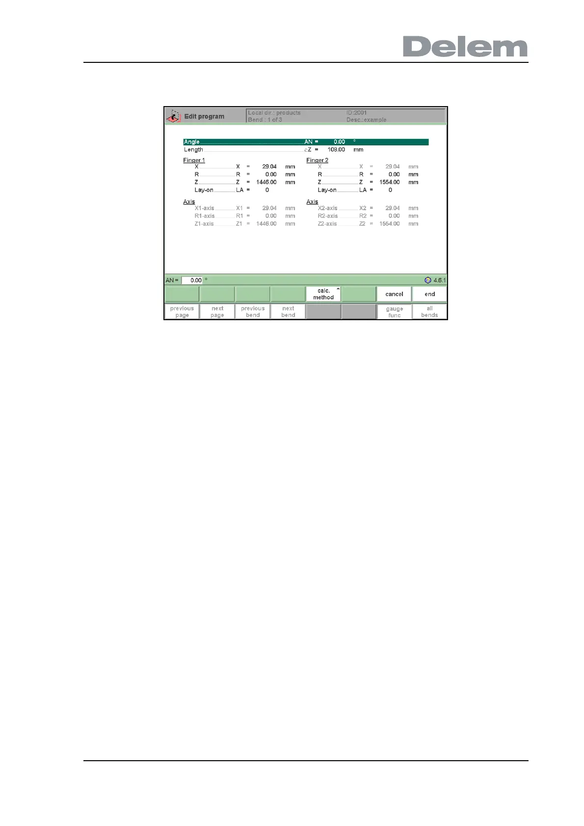 axis positions that are necessary for this bend are calculated from the programmed finger