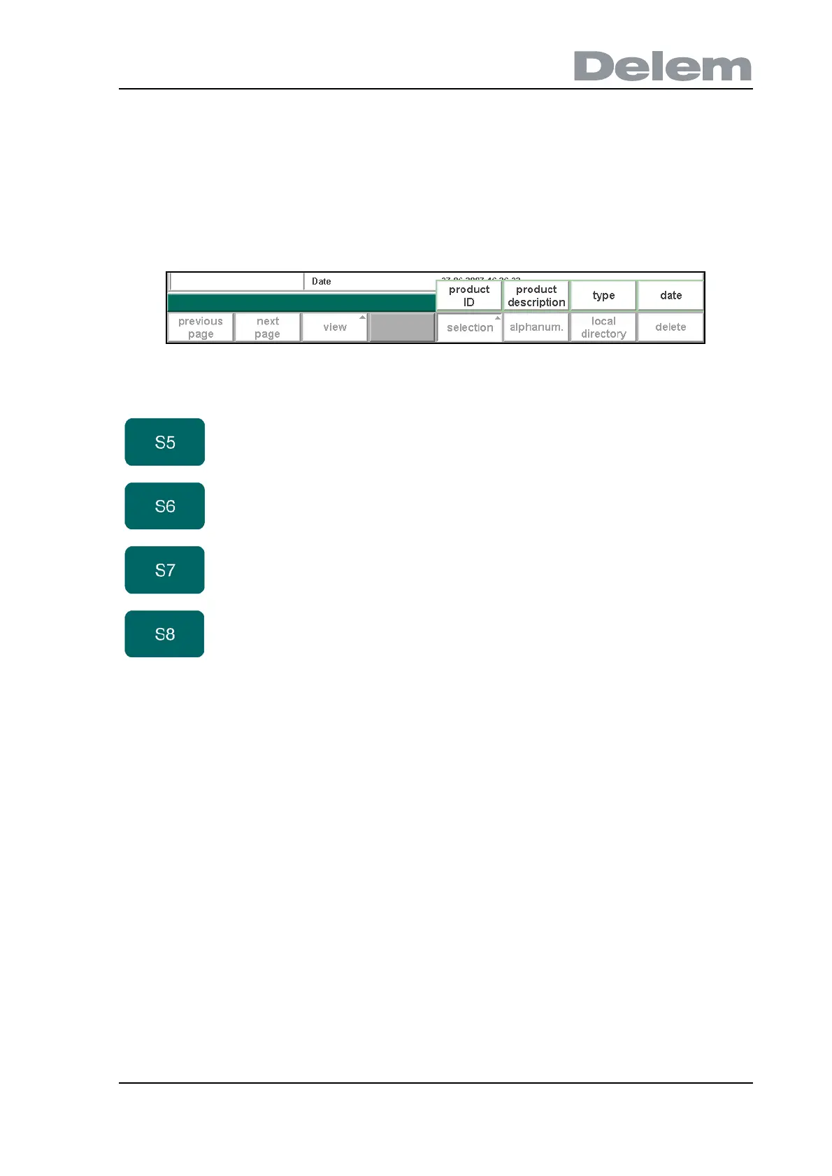 When the function key ‘selection’ has been pressed a new, temporary button bar appears with