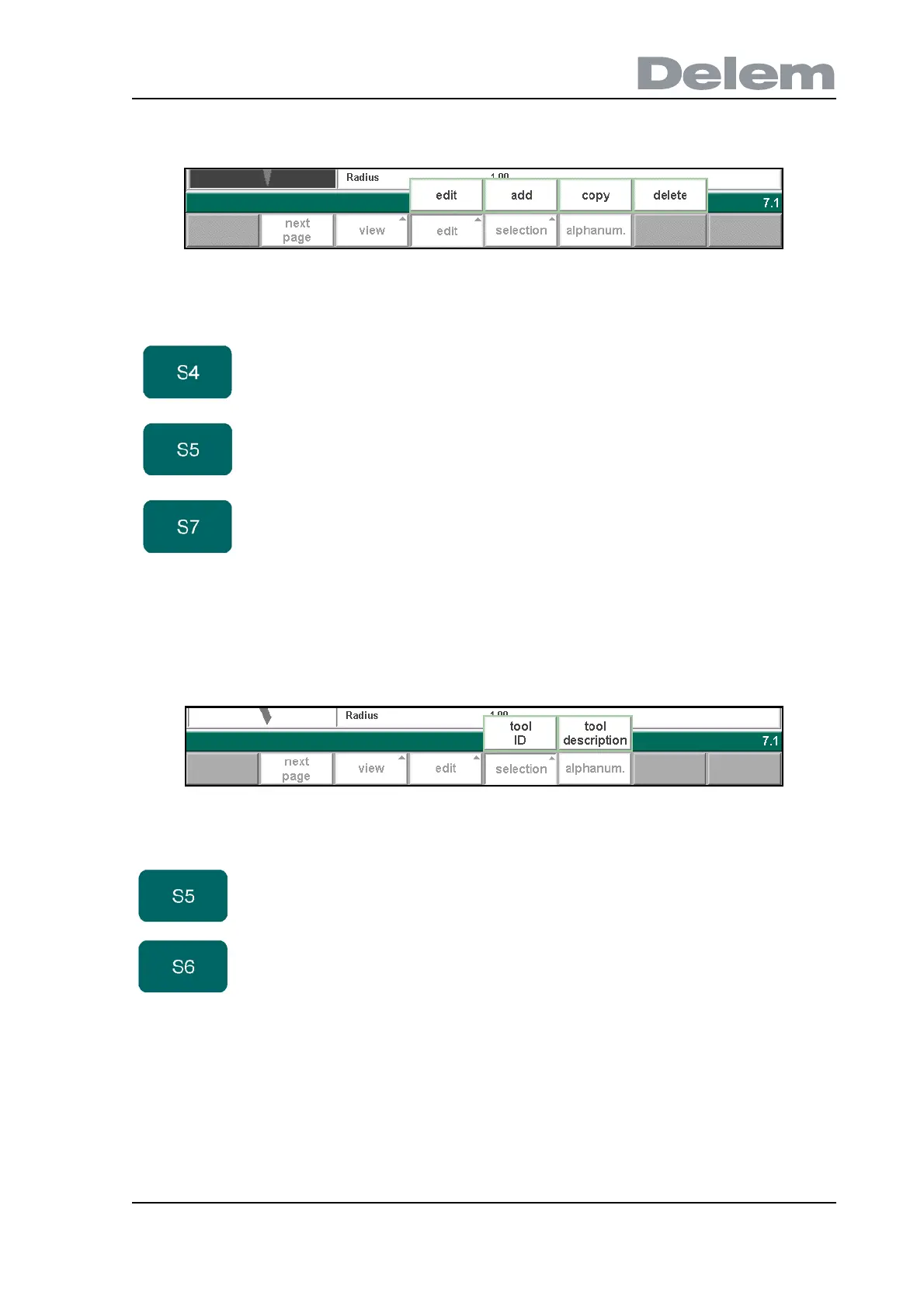 When the function key ‘edit’ has been pressed a new, temporary button bar appears with