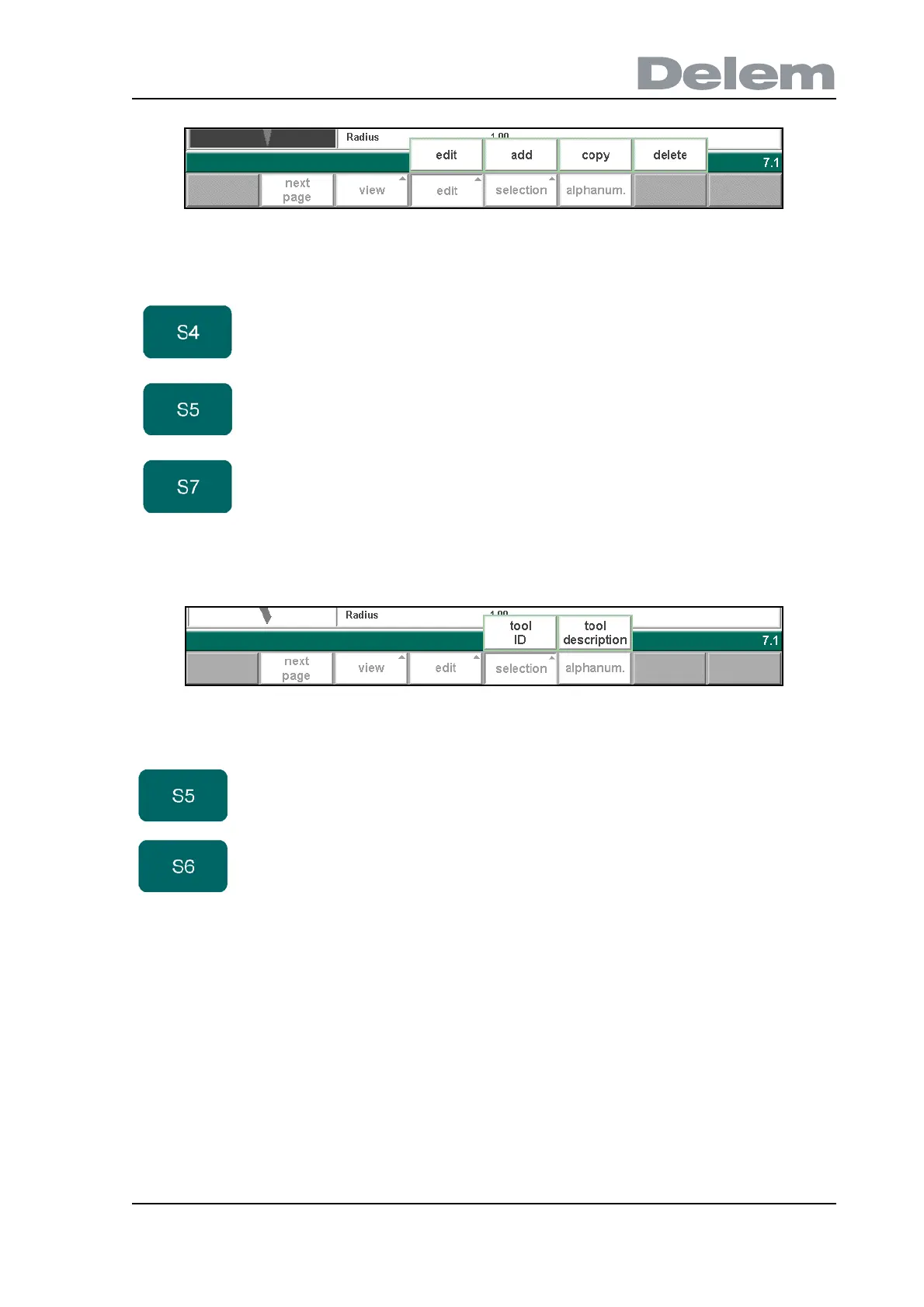 When the function key ‘selection’ has been pressed a new, temporary button bar appears with