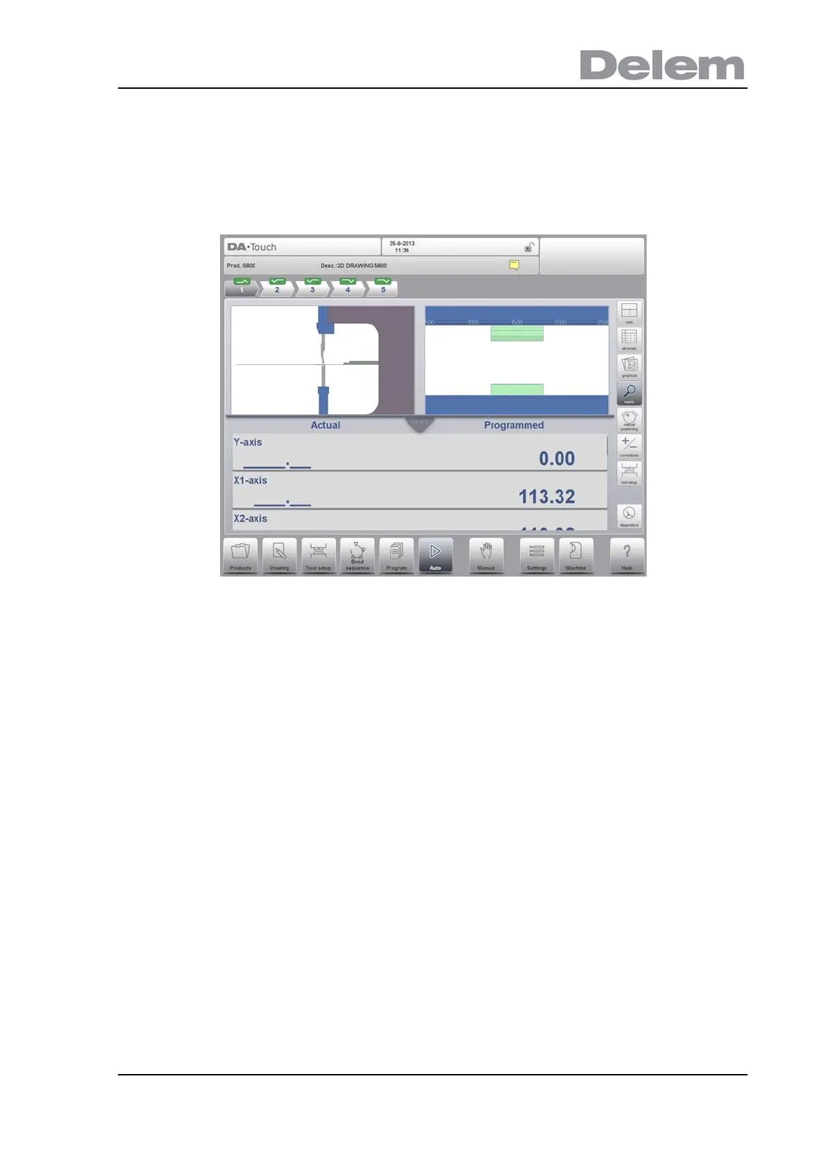Next to the target position (programmed) also the actual position of all access can be