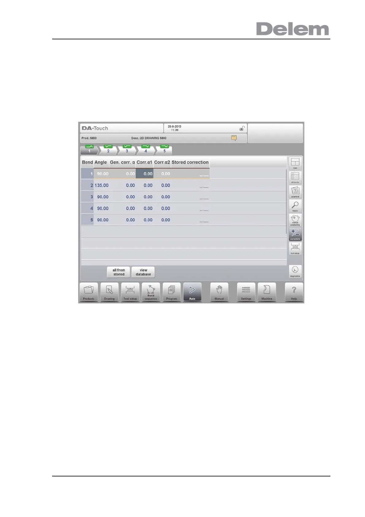 activated. When activated, the column 'Stored correction' shows for each bend the correction