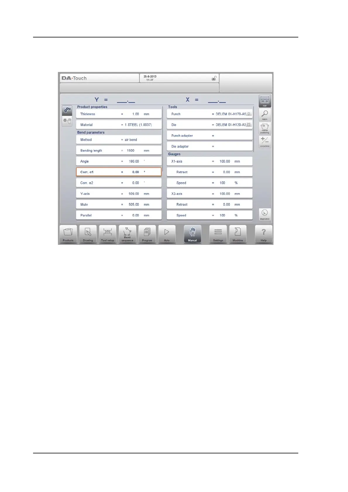 Main view, there are Macro, Manual Positioning, Corrections as also a Diagnostics view.