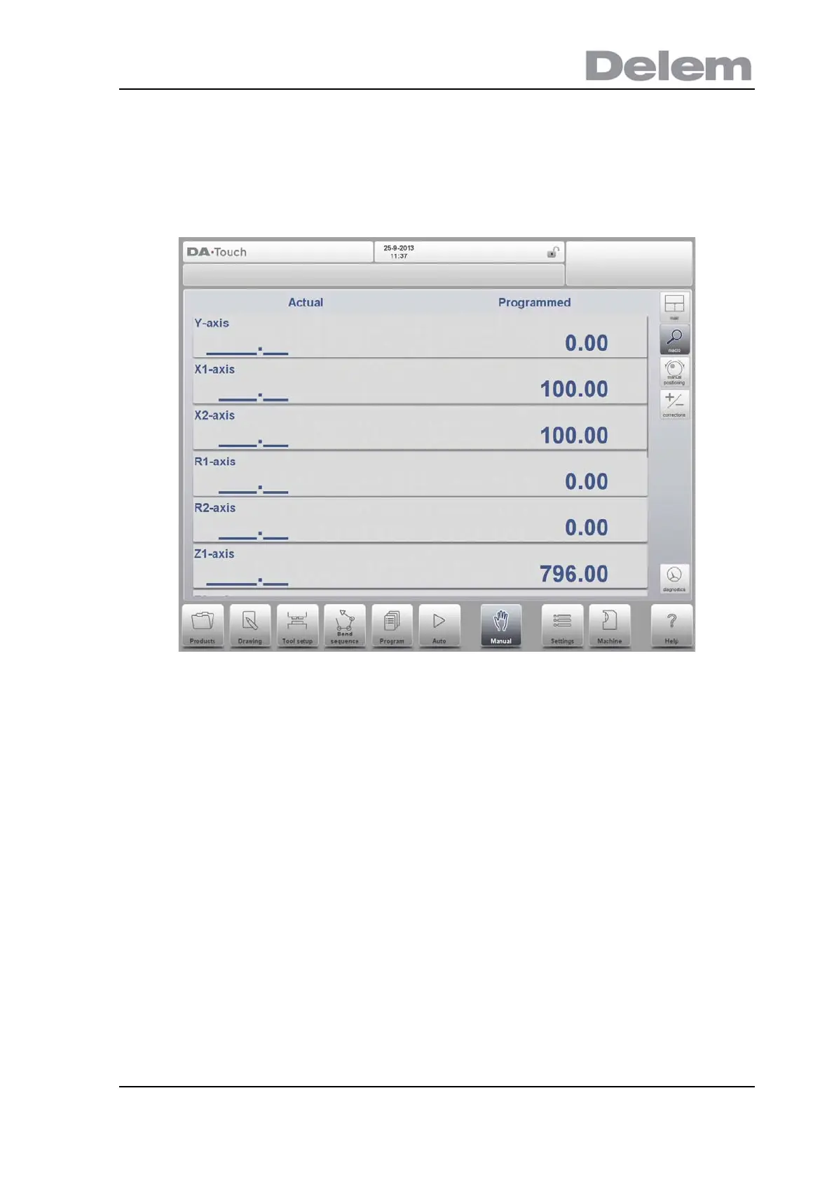 With Macro the control switches to a new view with only large axes values on the screen. This