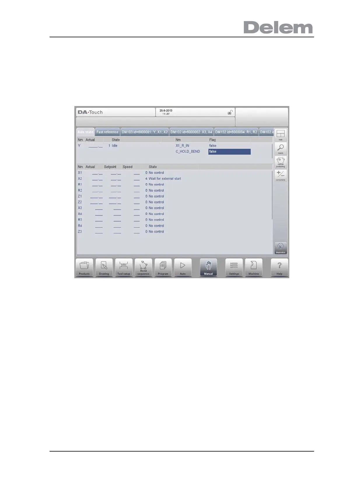 When tapping Diagnostics, the control switches to a new view which shows axes states. In