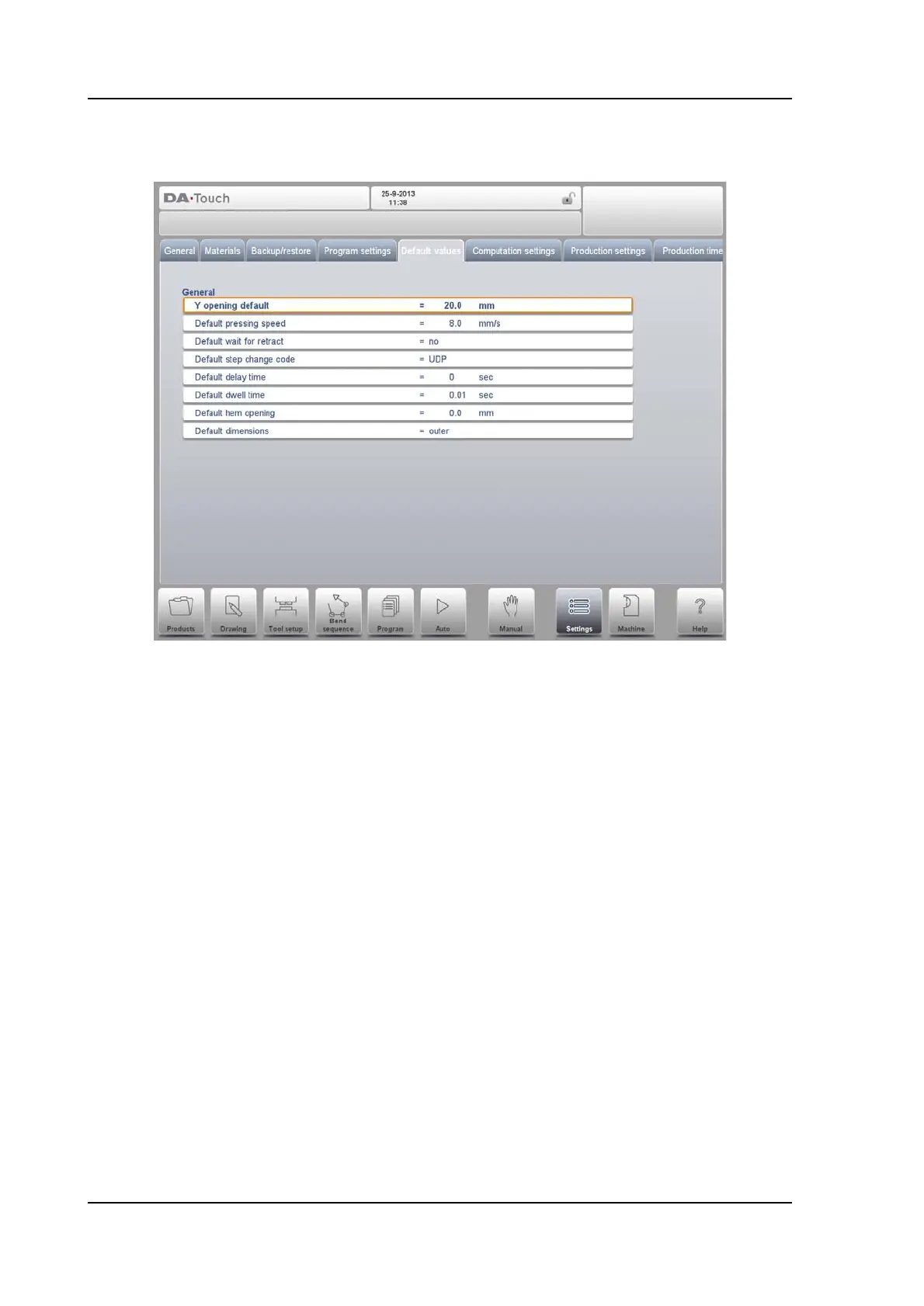 The value programmed here is used as initial value for the parameter 'Y-axis opening' in