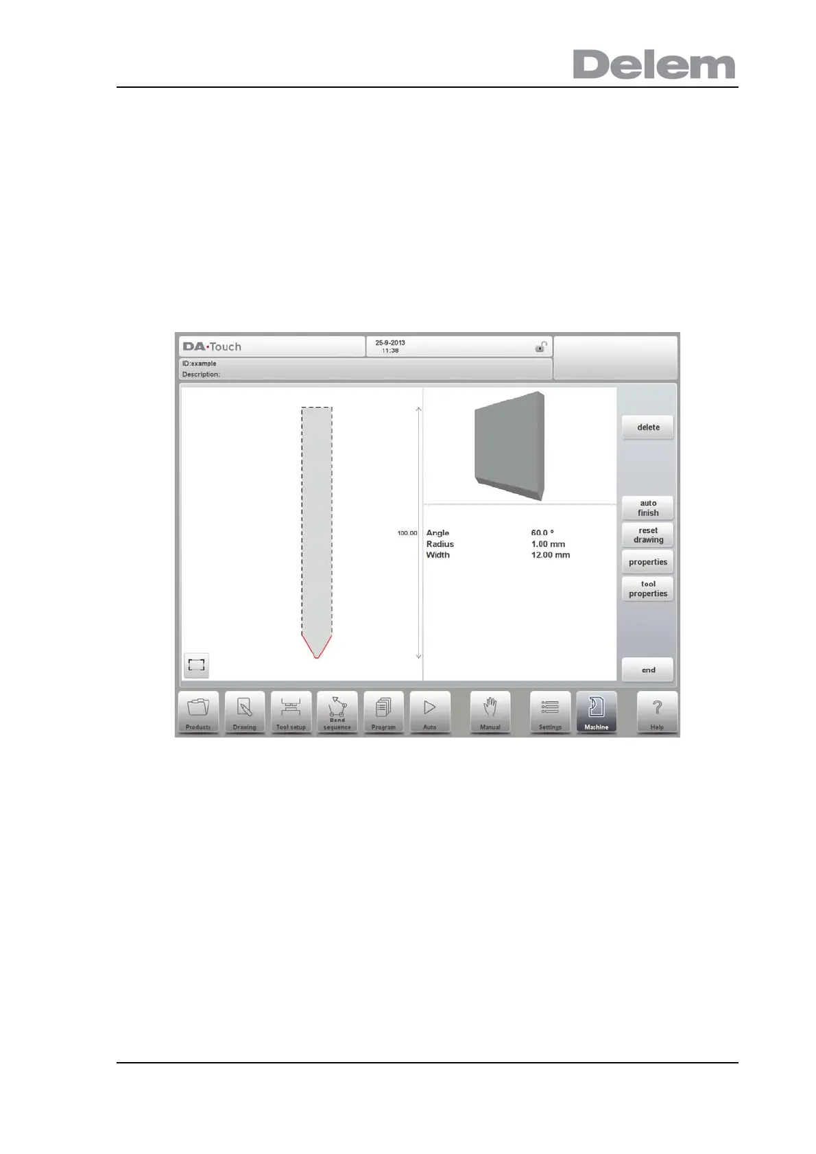 Drawing a tool profile is done by entering angle values and line length values. Also the Touch