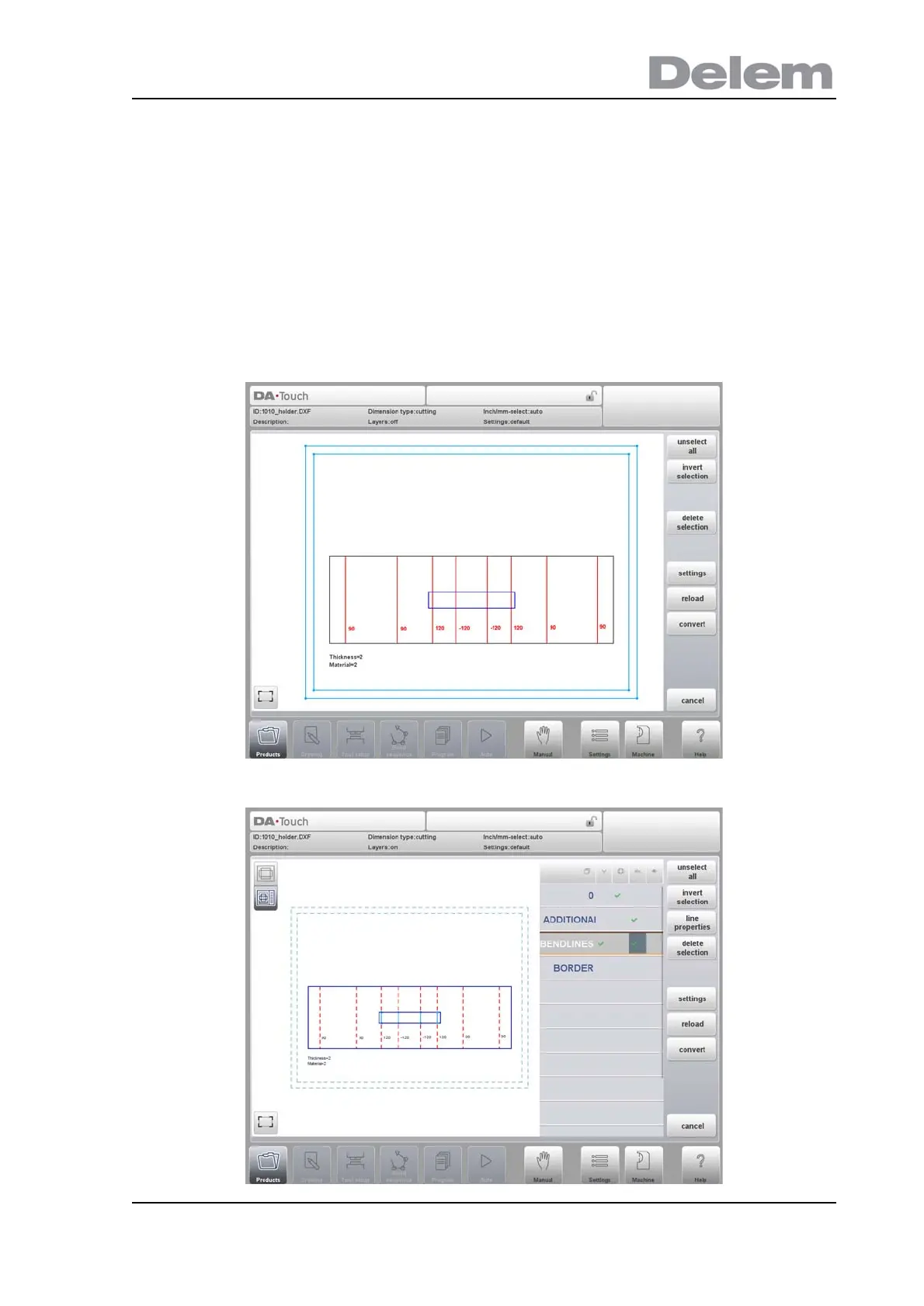 In the window of the DXF converter lines can be selected, by tapping on these lines, and