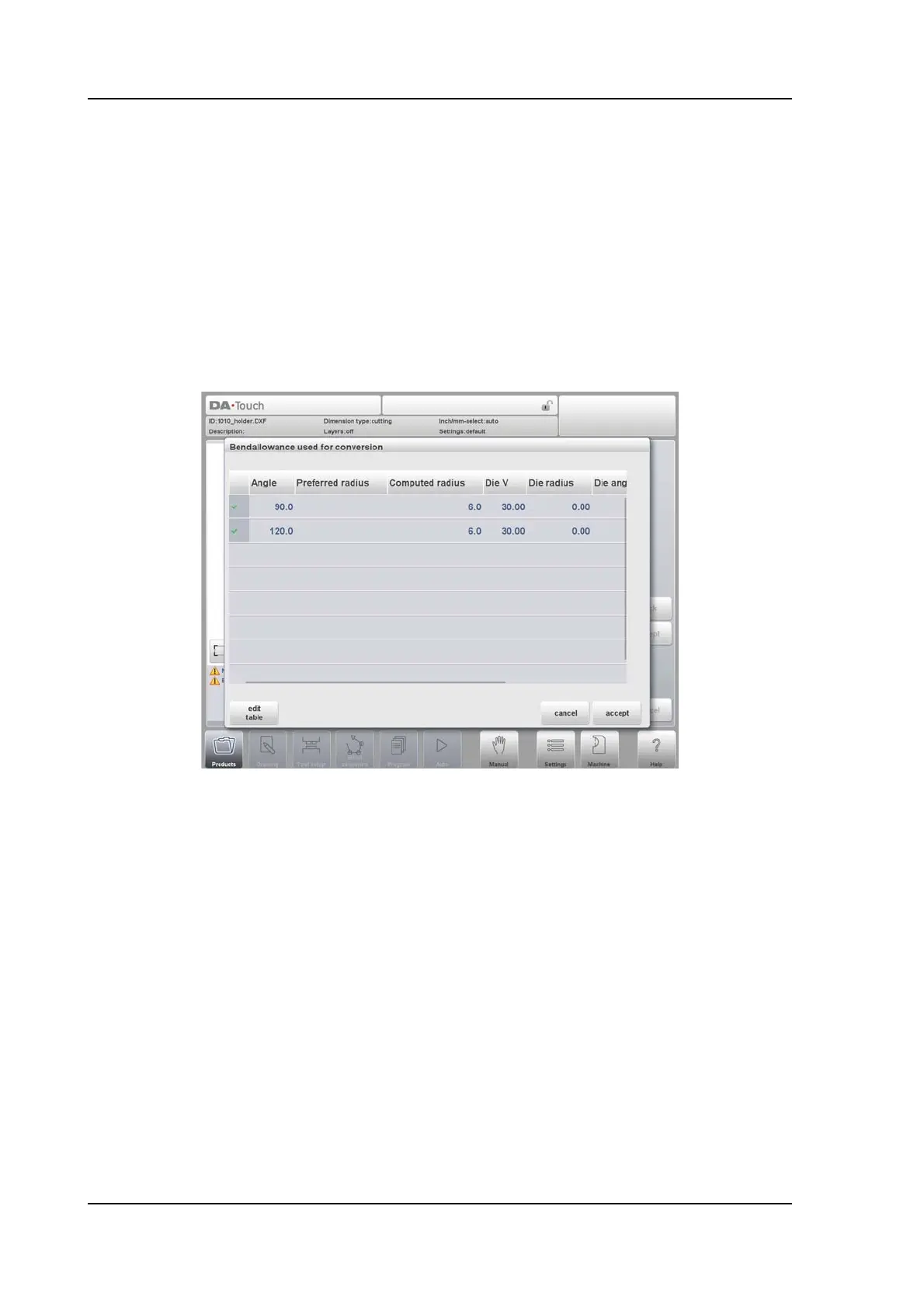 If no bend allowance entry is available, the bend allowance table can be editted directly from