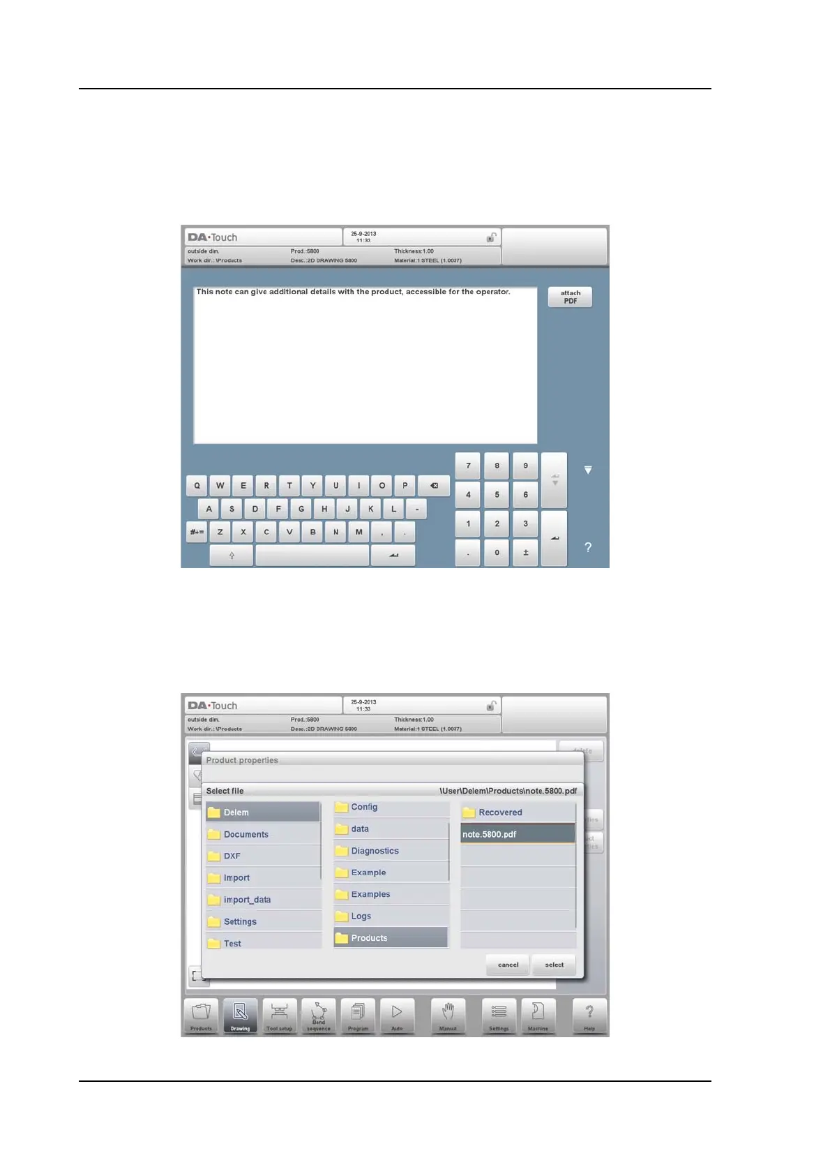 To attach a PDF file to the note tap Attach PDF. Via the directory browser a PDF file can be