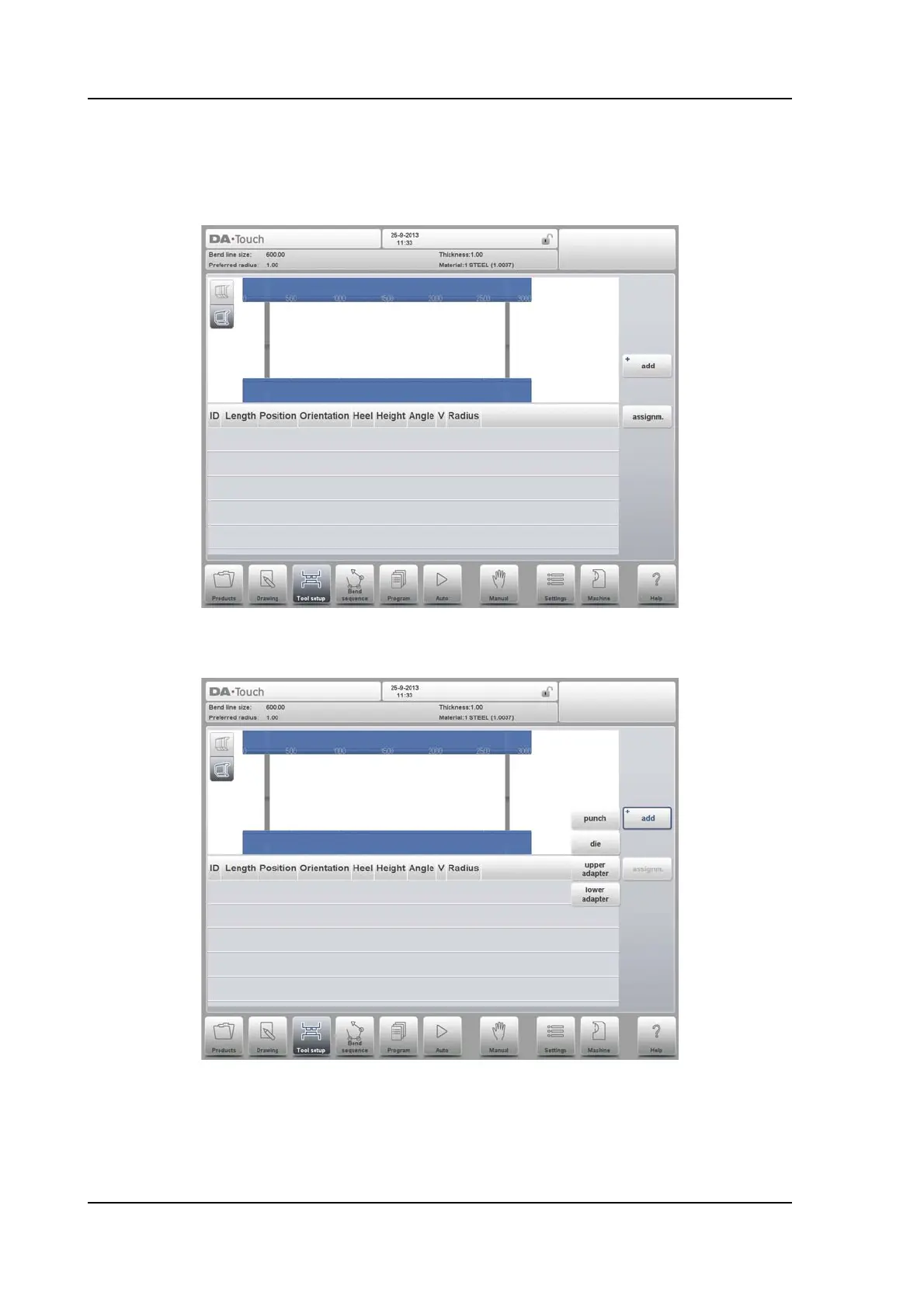 Select Add to add a tool to the configuration; punch, die or adapter (if enabled).