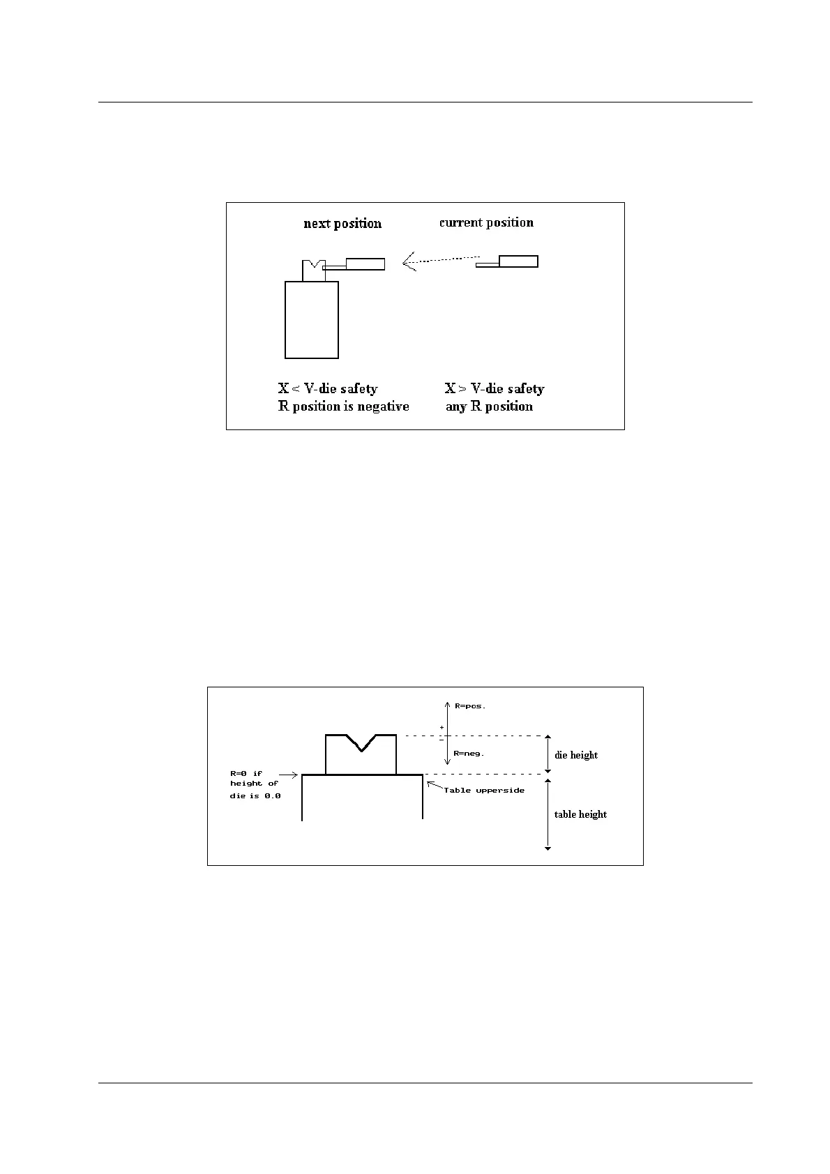 • When the next R-position is negative and within the V-die safety this will always give