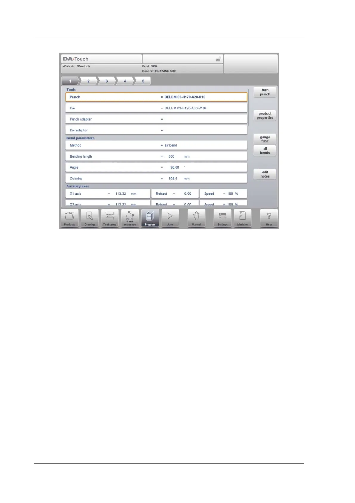 Opens a new window, in which product properties, effective for all bends, are shown and can