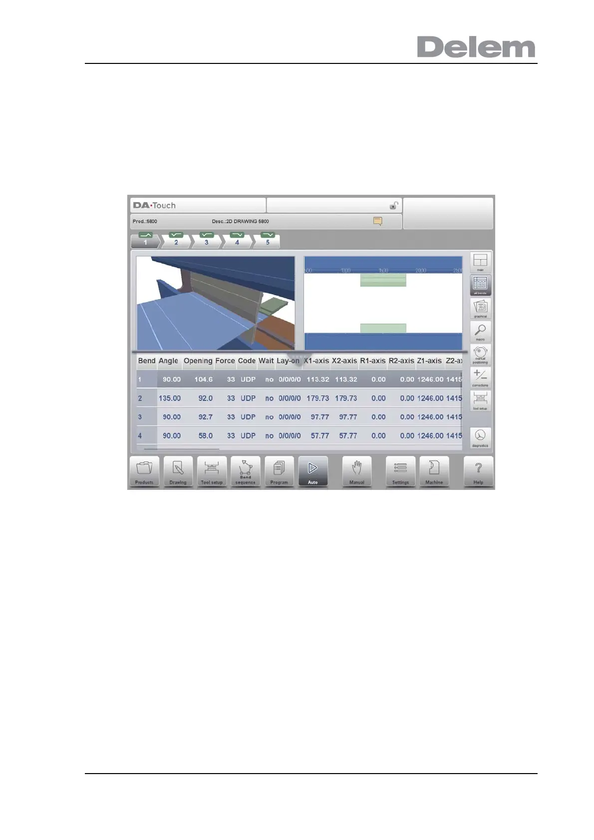 bend are shown in the lower part of the screen.