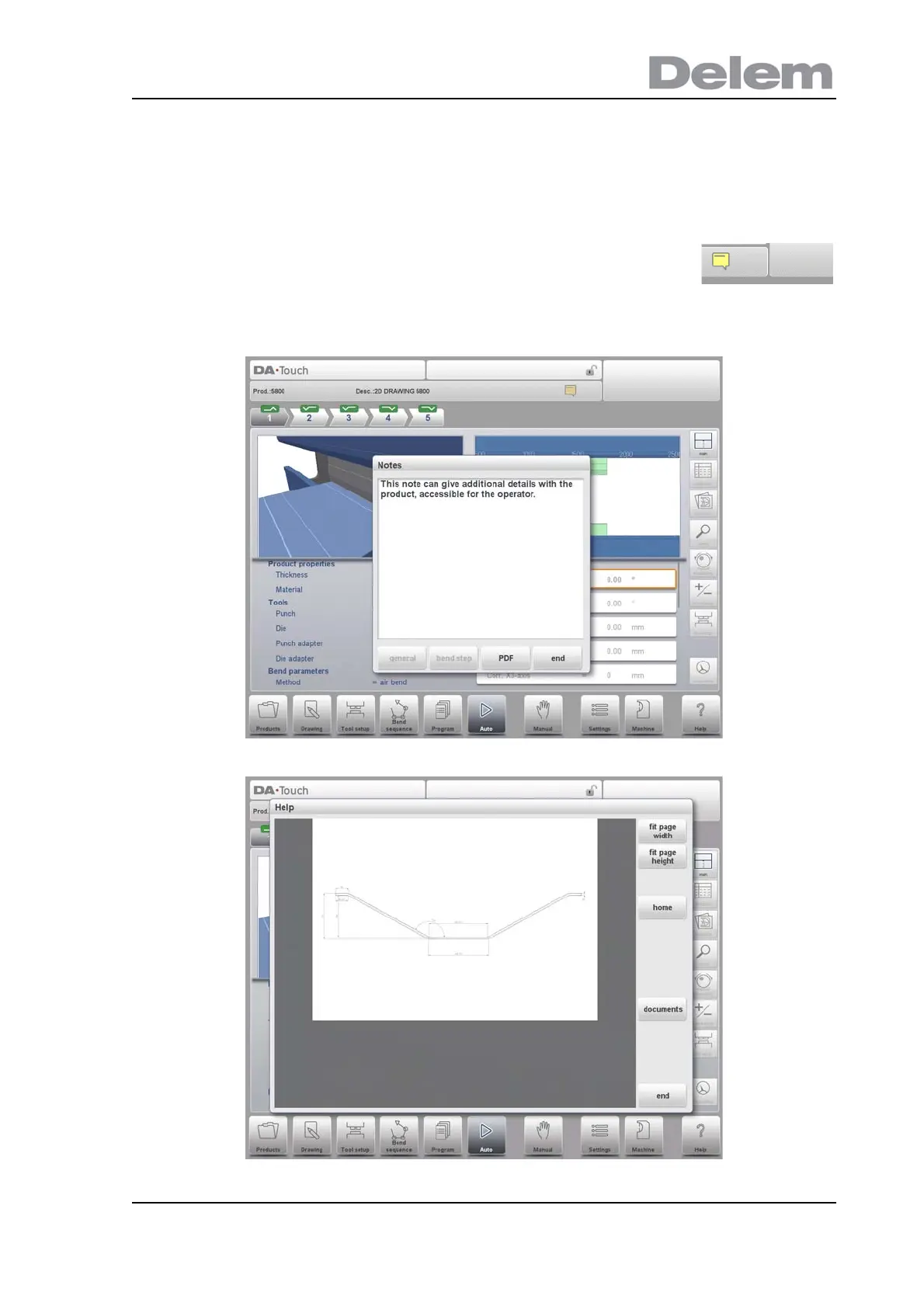 Notes can be added generally to a product or program but also to specific bends. Within the