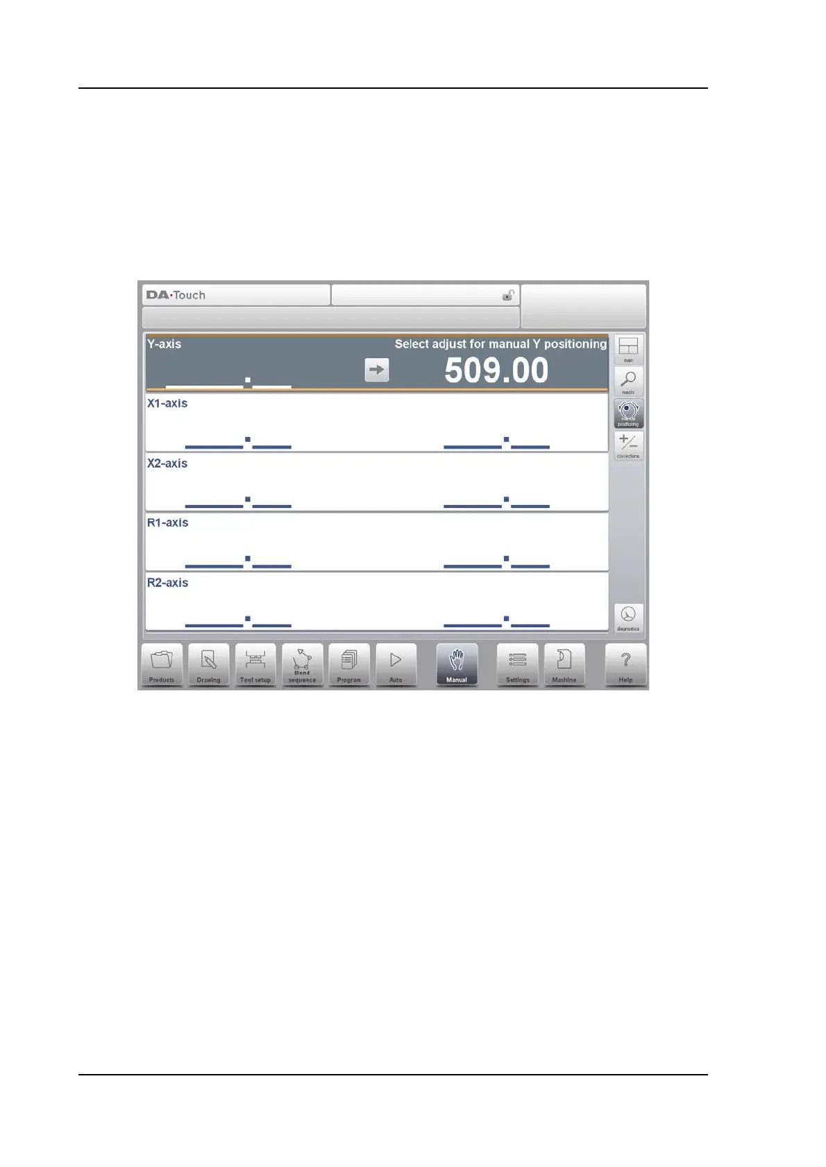 The pressbeam can be positioned manually in the same way as the auxiliary axes.