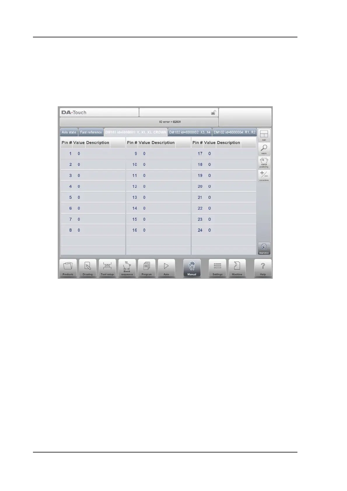 with the state of inputs and outputs. In this window, the current state of inputs and outputs can