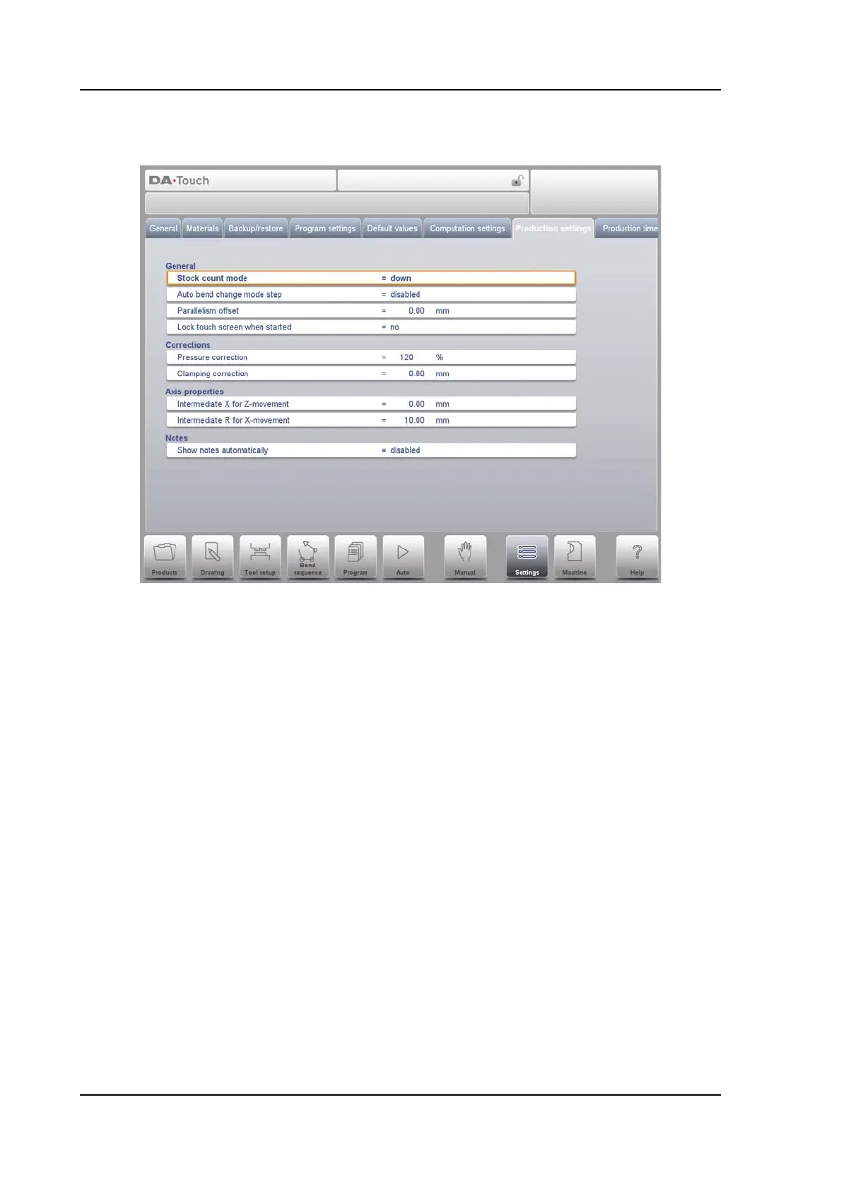 When down counting is selected, the stock counter in production mode is decremented