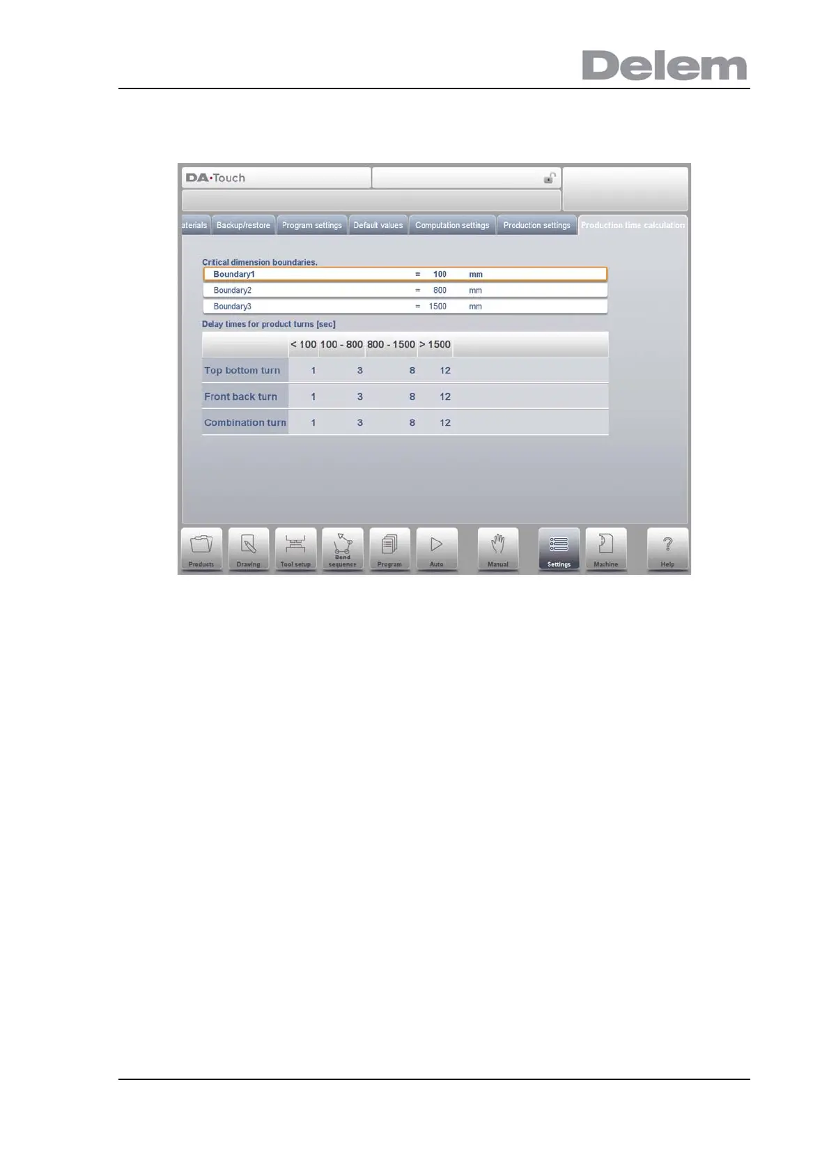 product turn times can be programmed.