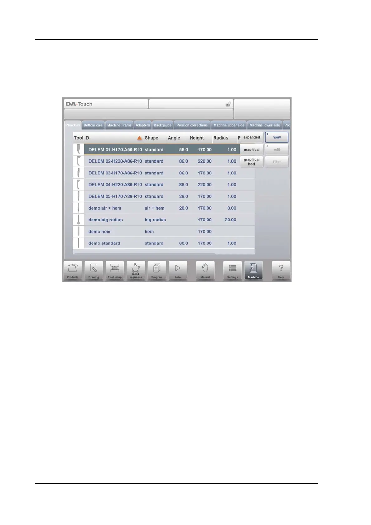 In this tab, the punches used in the machine, can be programmed. New punches can be
