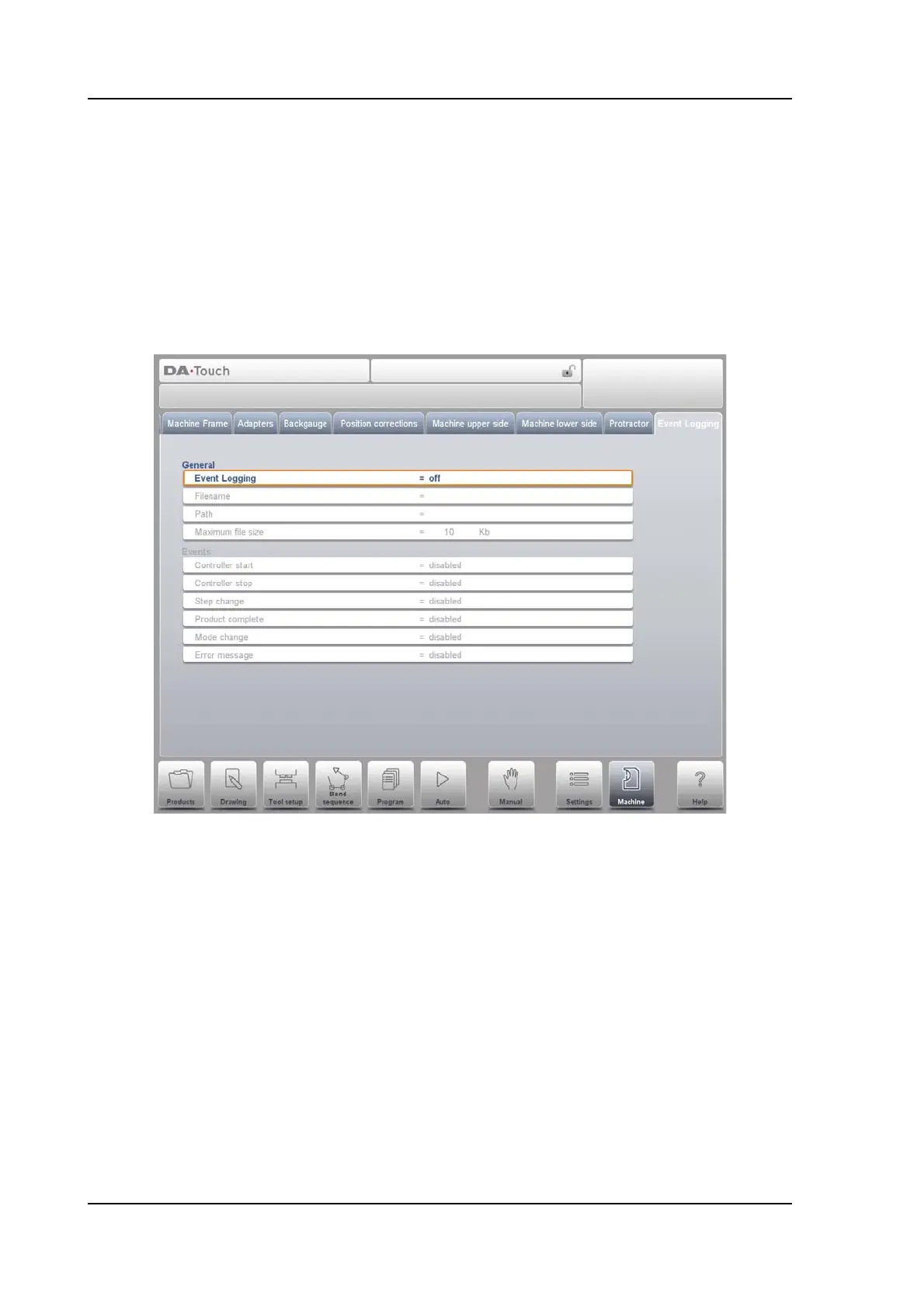 This page contains all parameters for the event logging function. The events that are logged