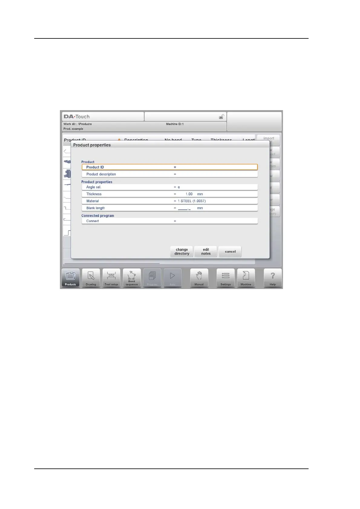 After New Program is chosen, the programming starts with its general details like e.g. Product
