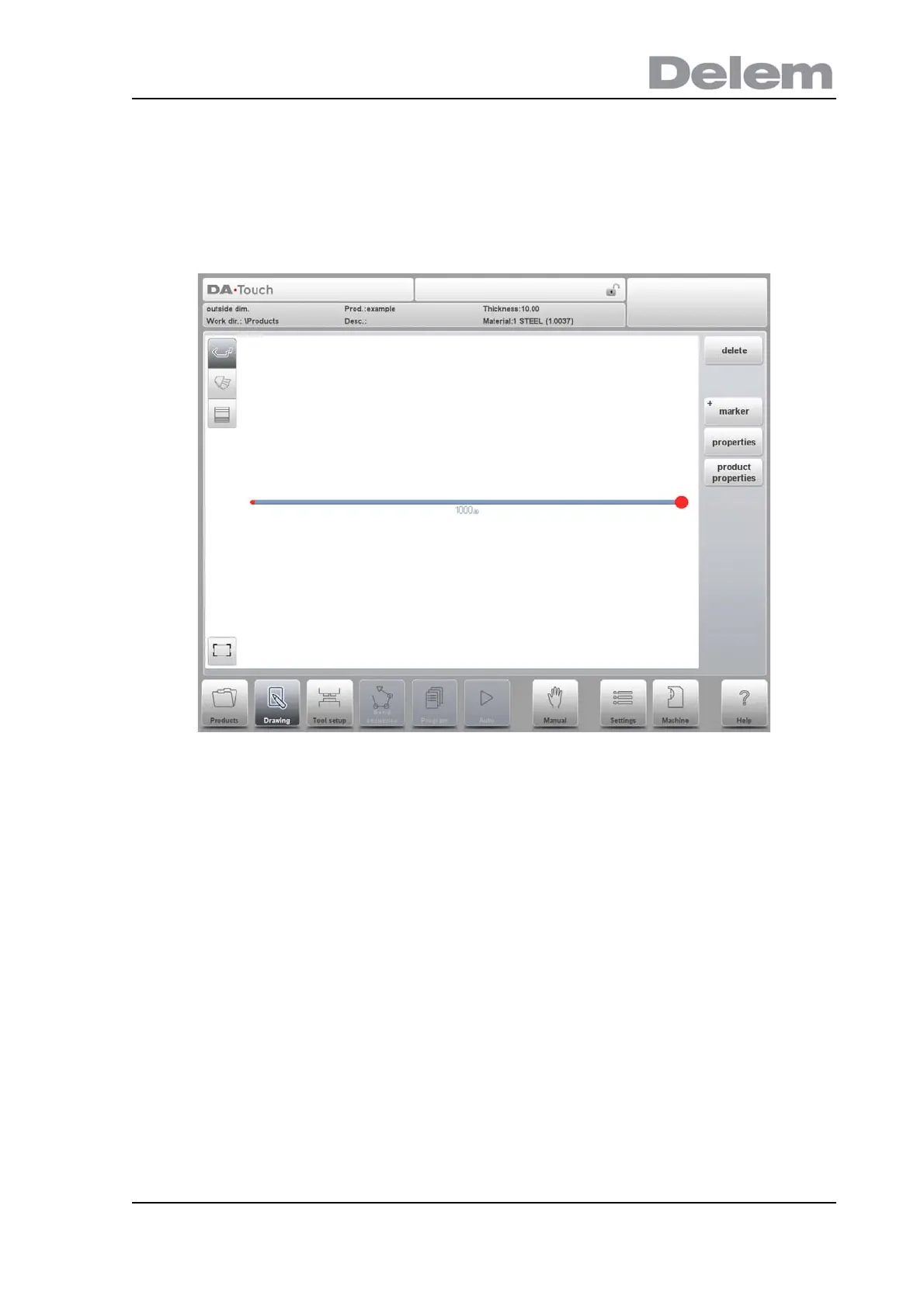 After entering the general product data the drawing screen appears.