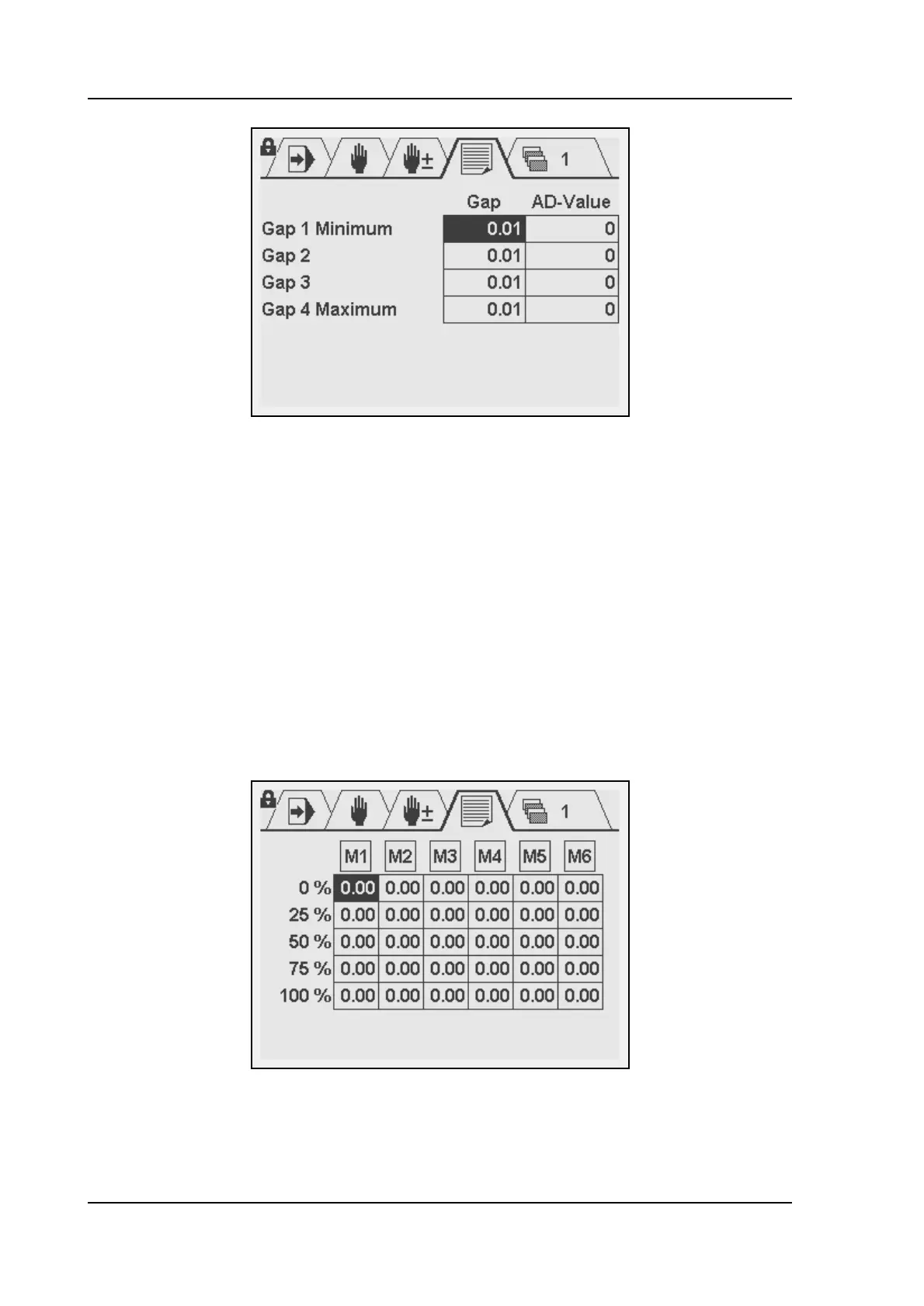 In this table the gap can be programmed as a function of sheet thickness and sheet material.