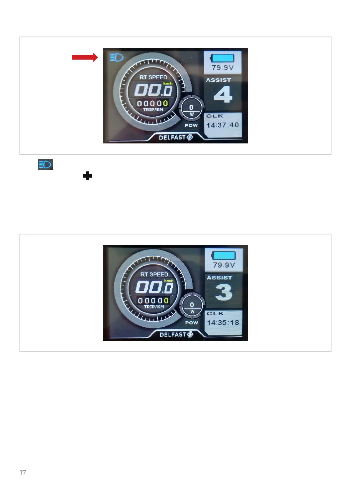 Icon show that the night mode of the display backlight is on.