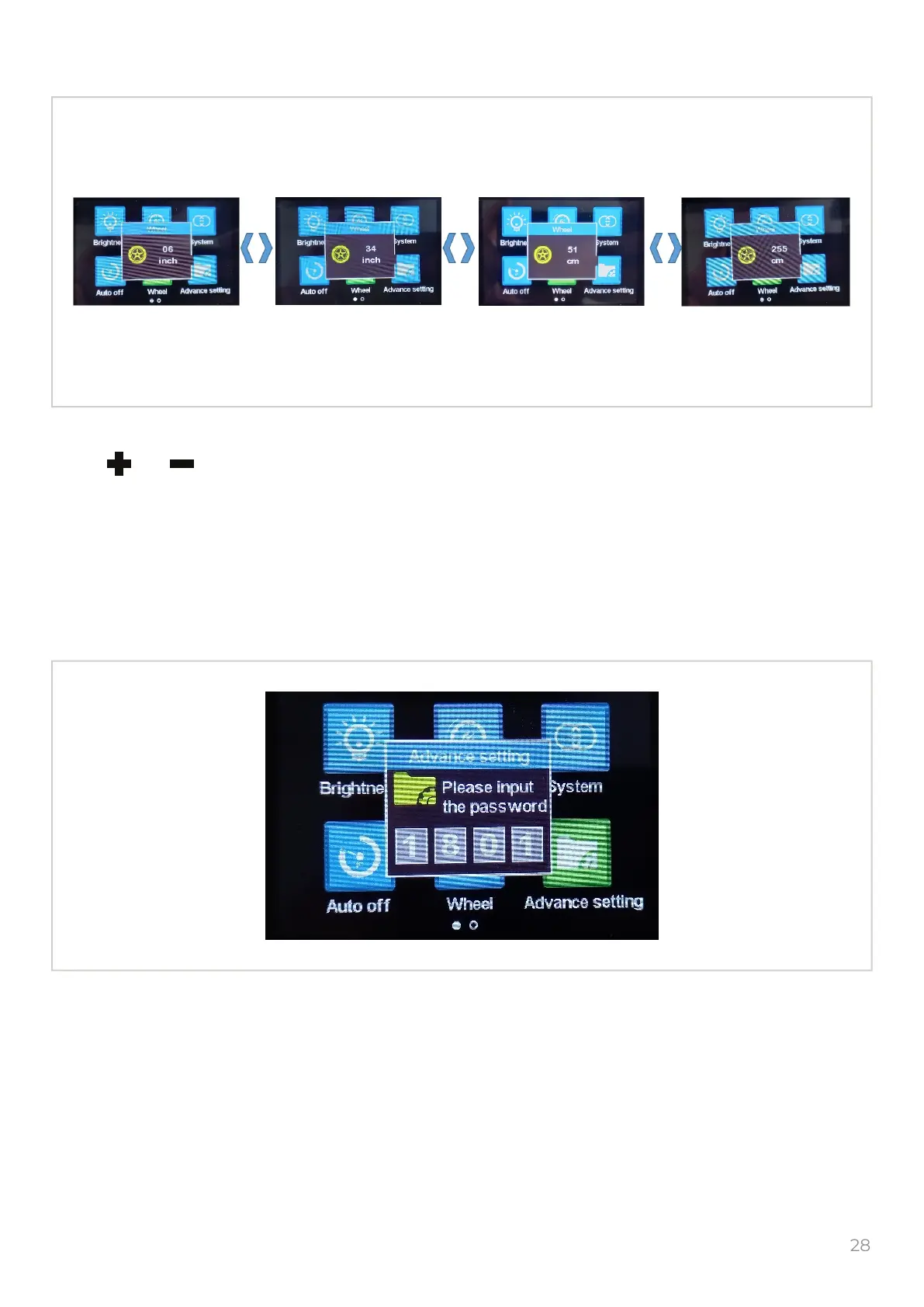 Select the “Wheel” icon and push the to get into the Wheel size settings.