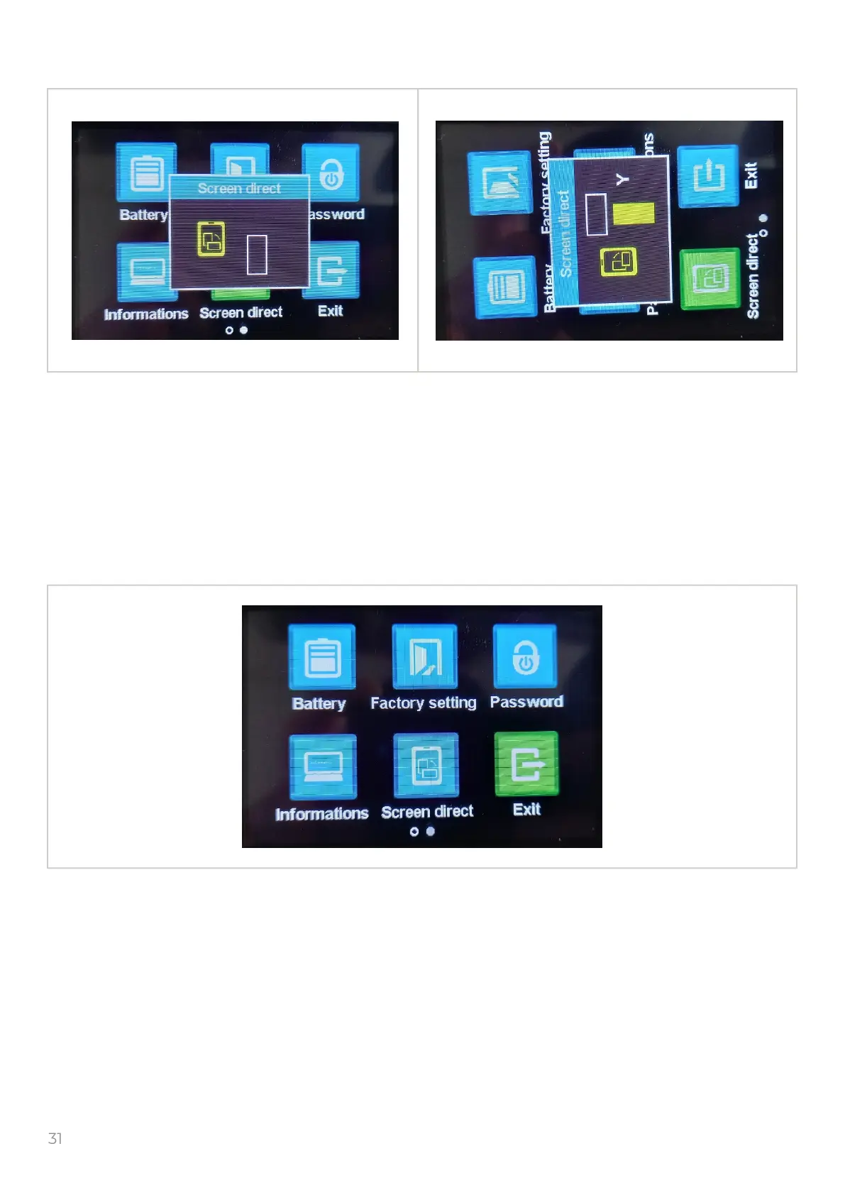 Screen direct - changing the orientation of the display, you can choose horizontall or vertical