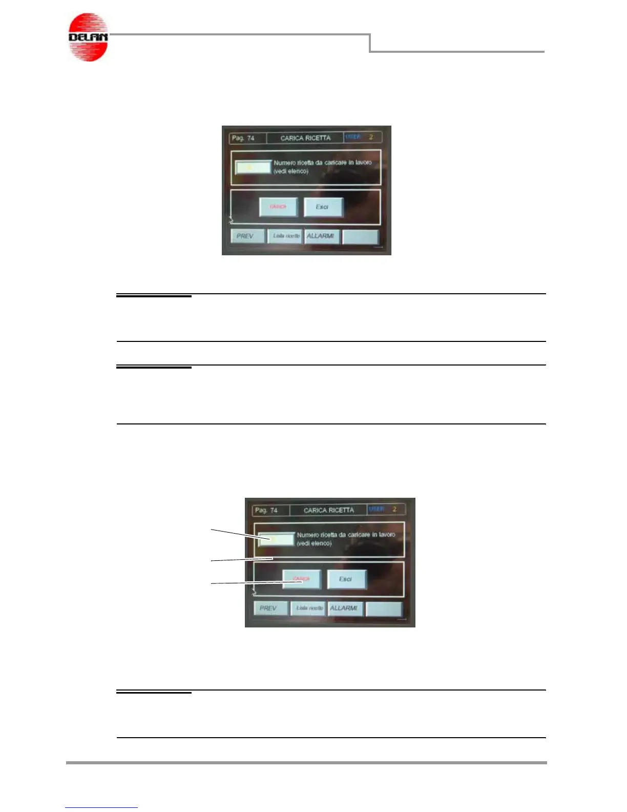 NOTE To have the list of the stored recipes, consult the "List of the recipes" by