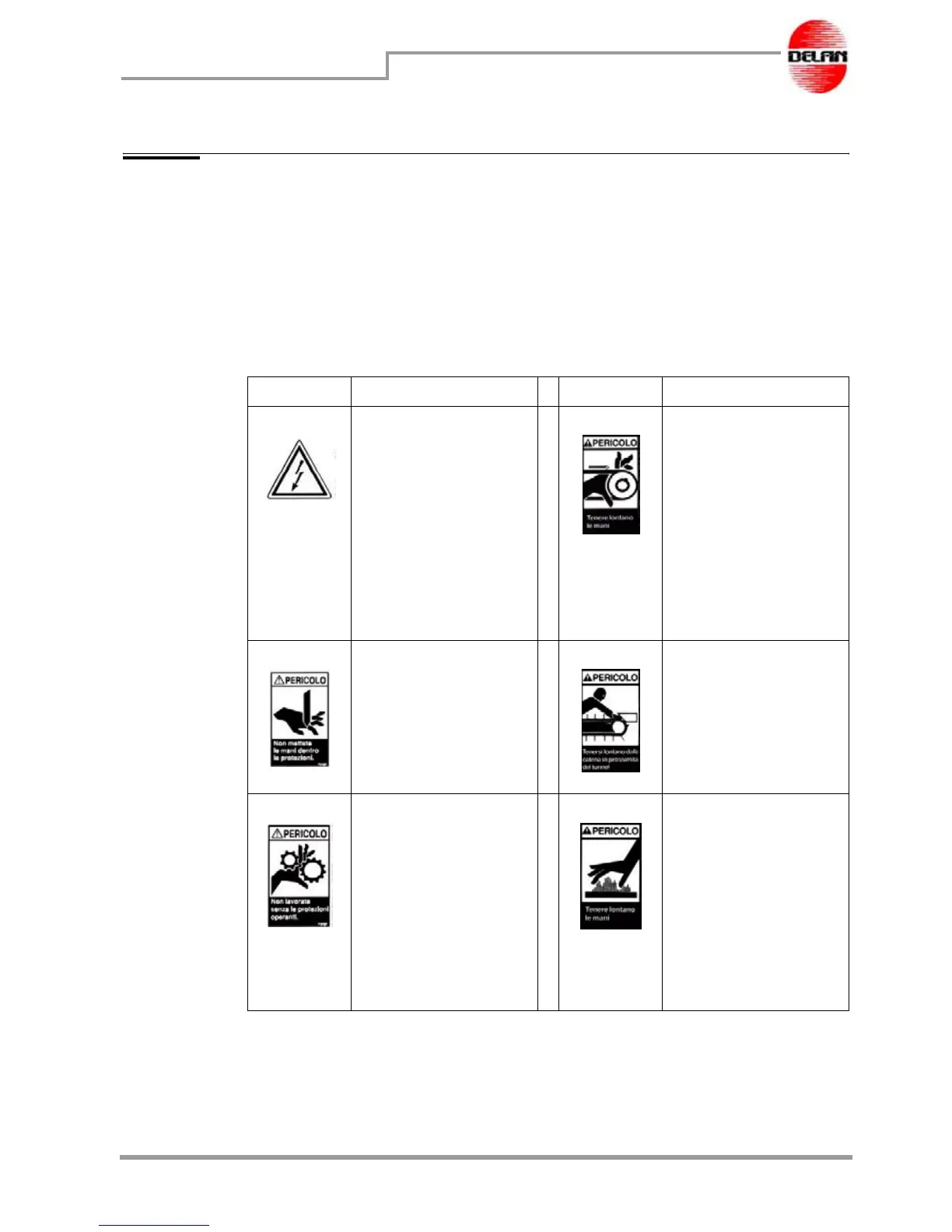 danger The labels are not to embellish the machine but are there to ensure the necessary