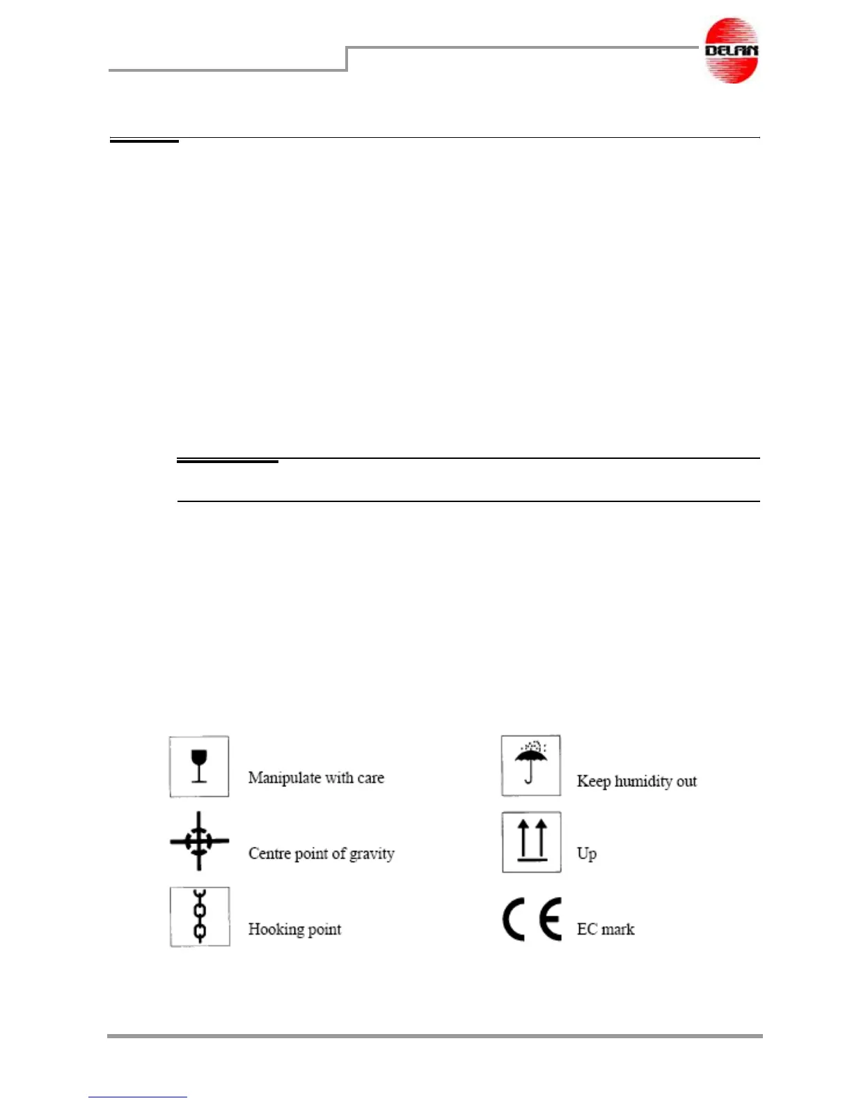 •Transport via Truck : The machine is to be placed on a pallet and covered for protection