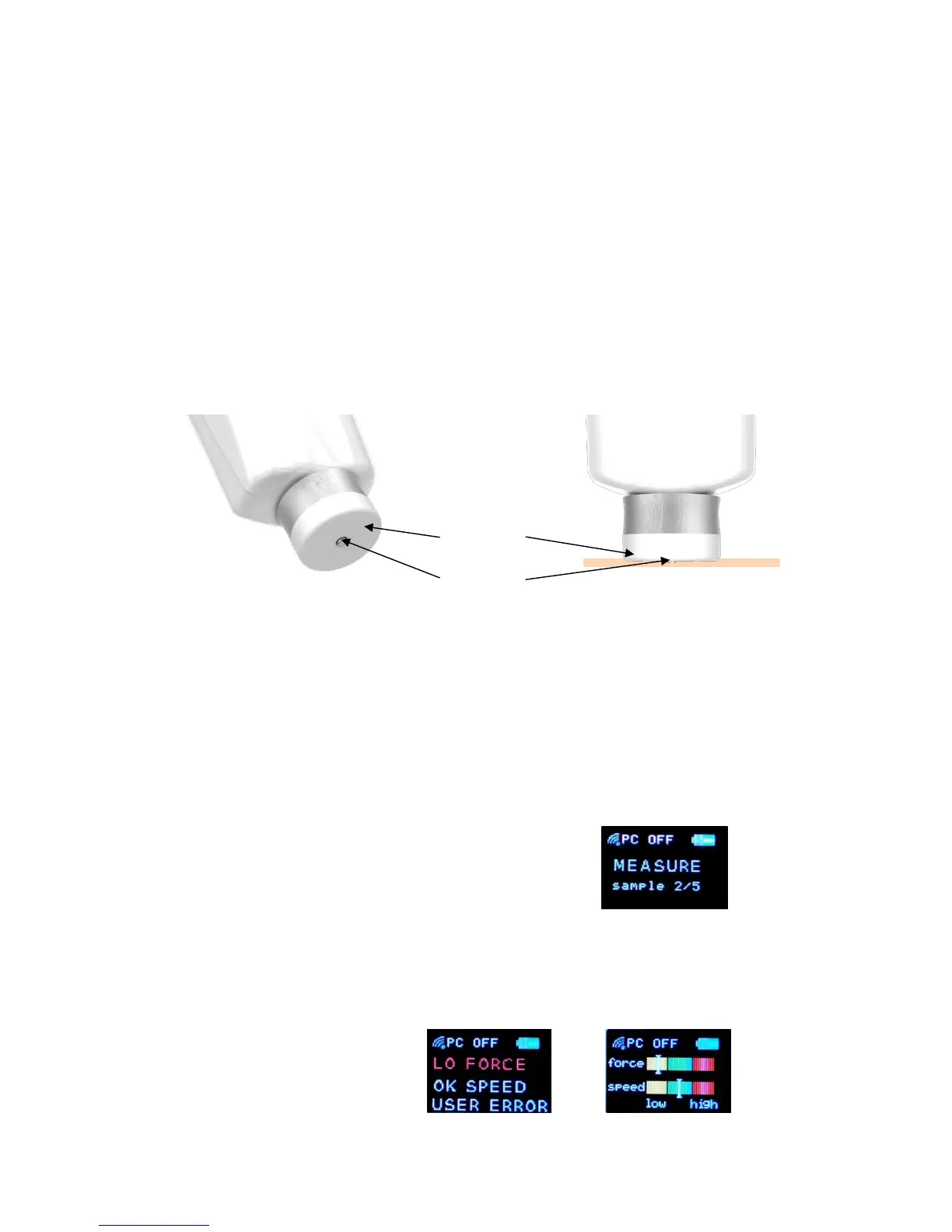 2. Place the probe perpendicularly, slightly and shortly on the skin, only