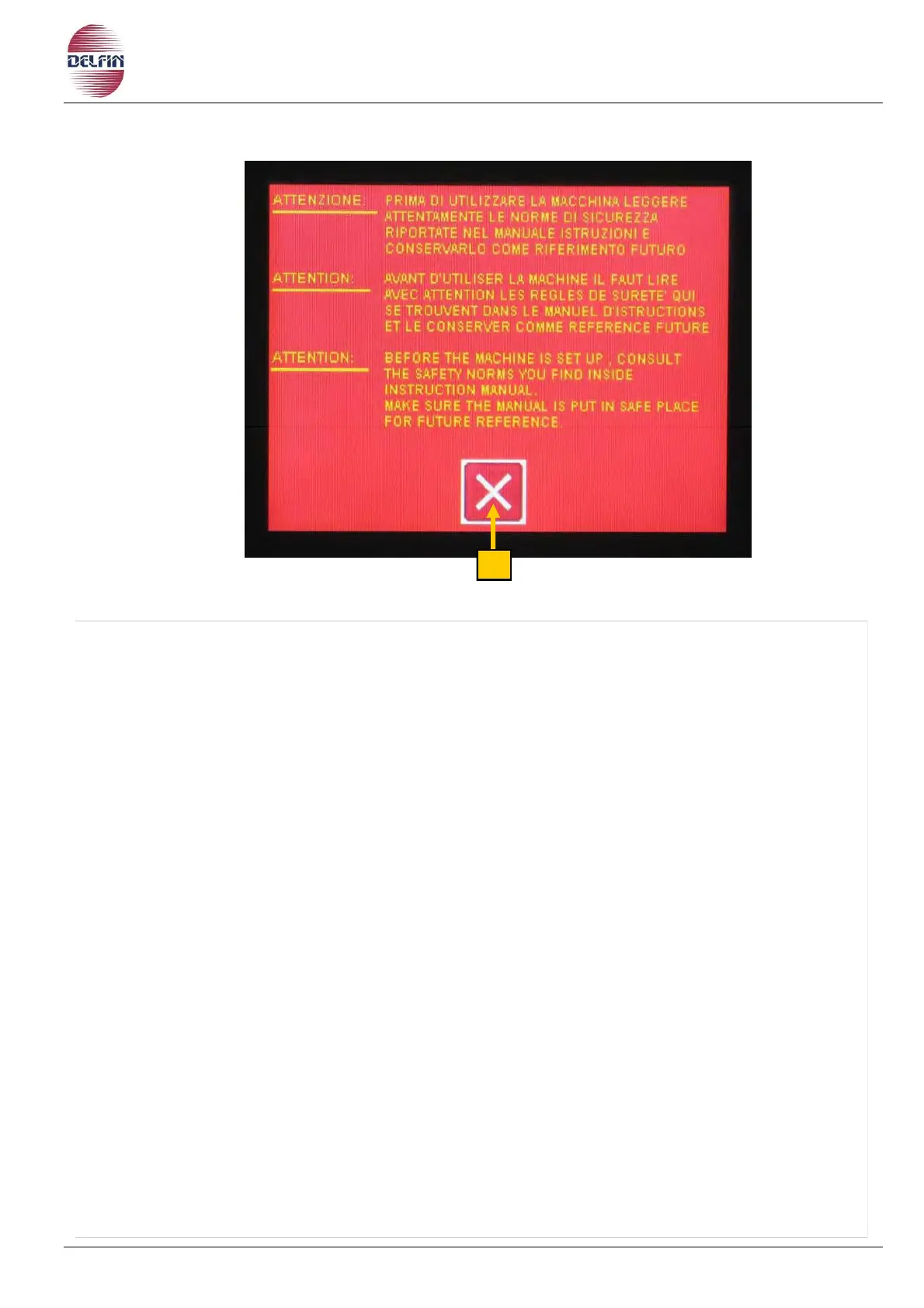 Pin order to pass to the first page of the touch-screen you must press button ref.1