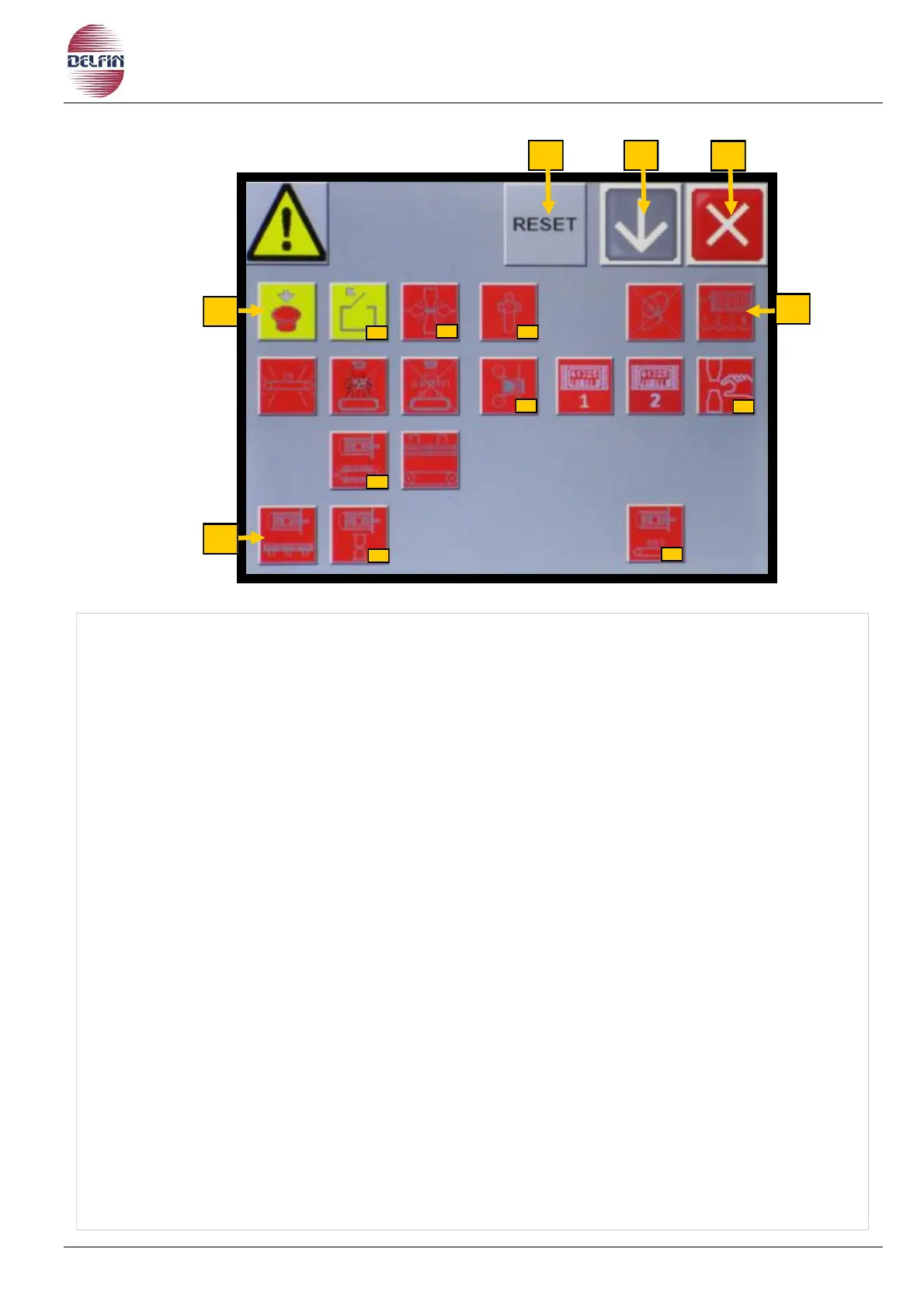 On this page all the alarms are visualized by a yellow flashing light, the alarms can be