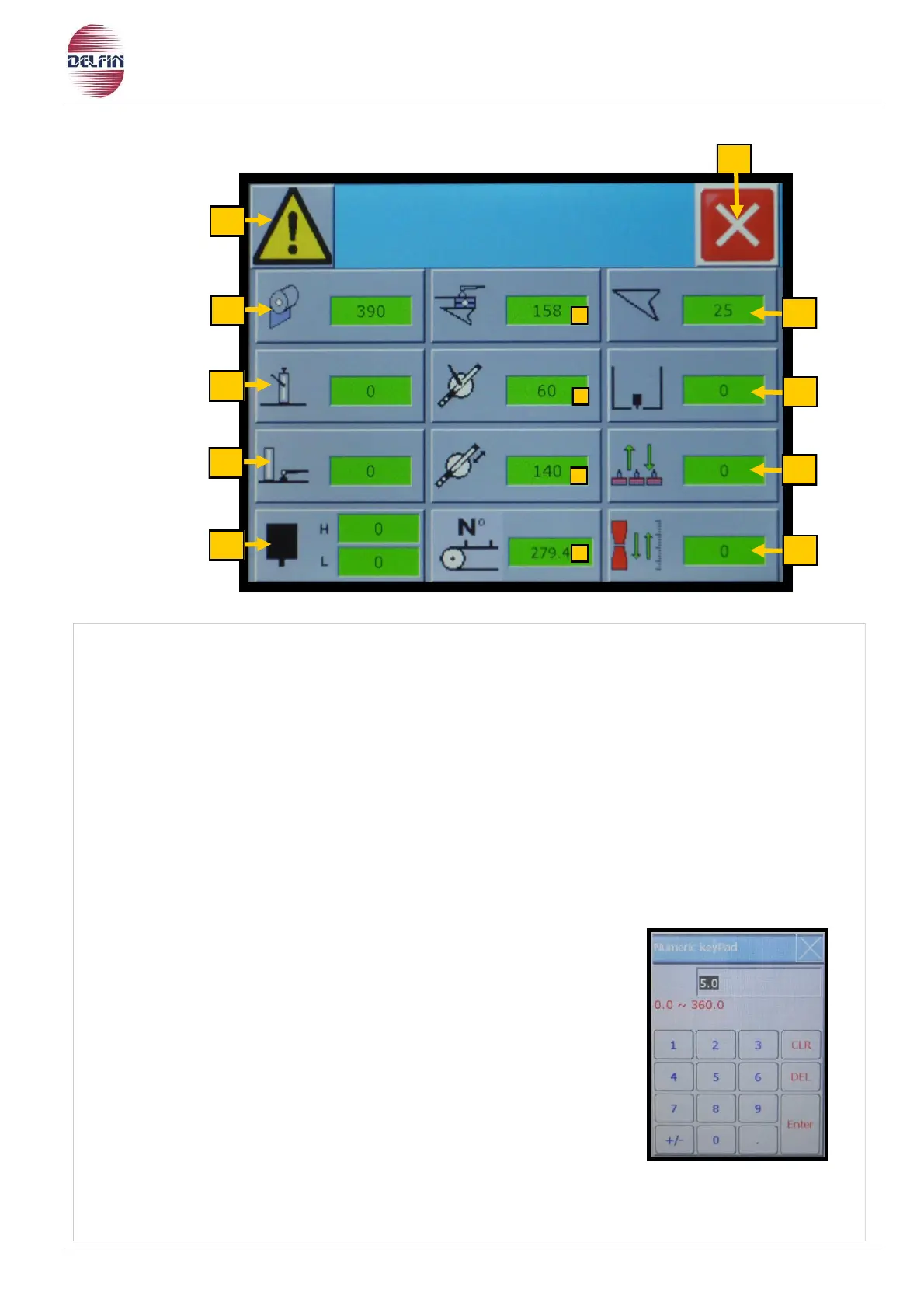 1) Button position 1 to go to page with list of alarms. If an alarm is active the colour of the