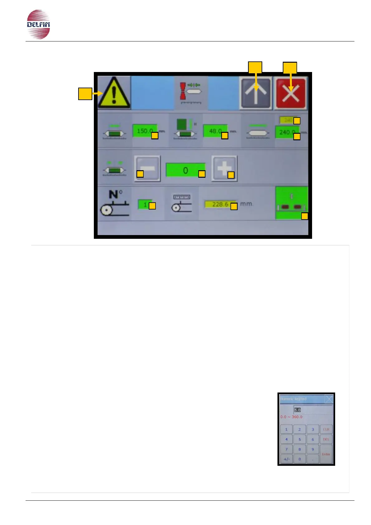 9) Button to impose the value of the product phasing position.