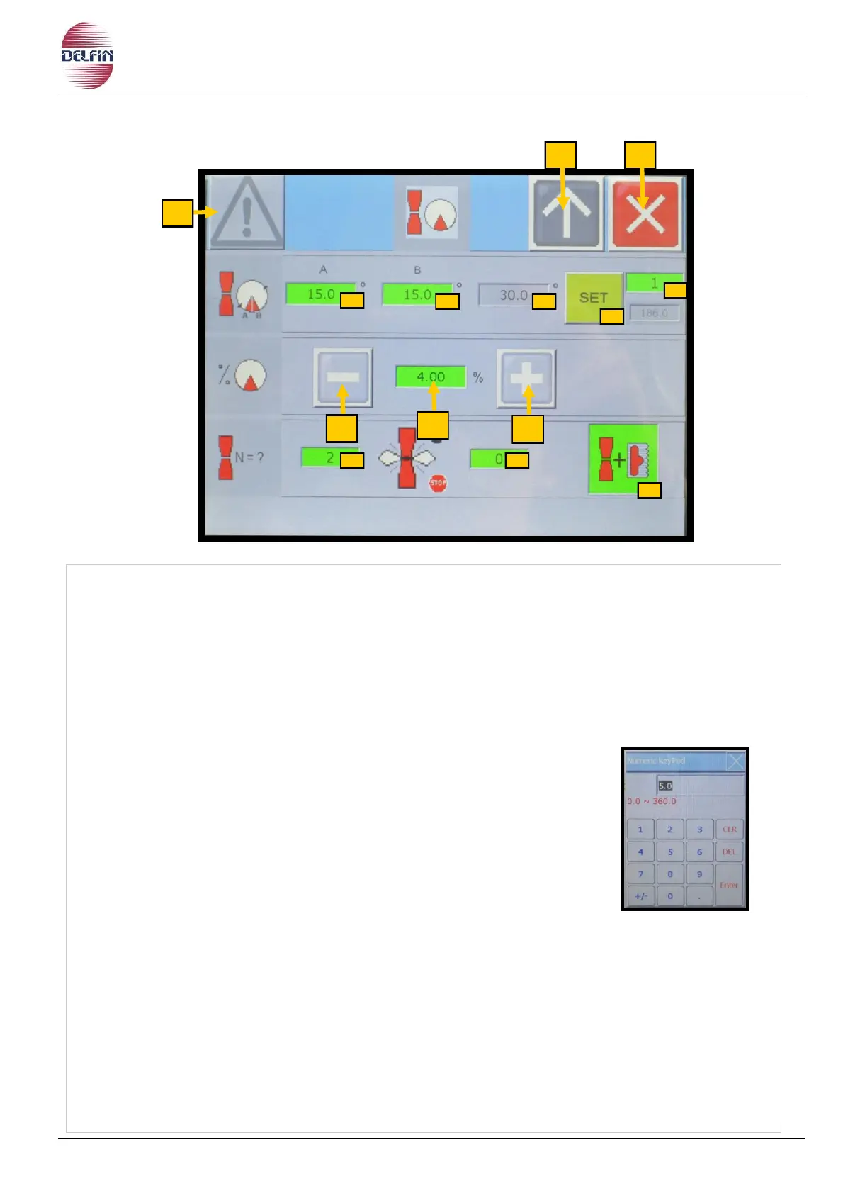 use the numeric keypad displayed to key in the desired value.