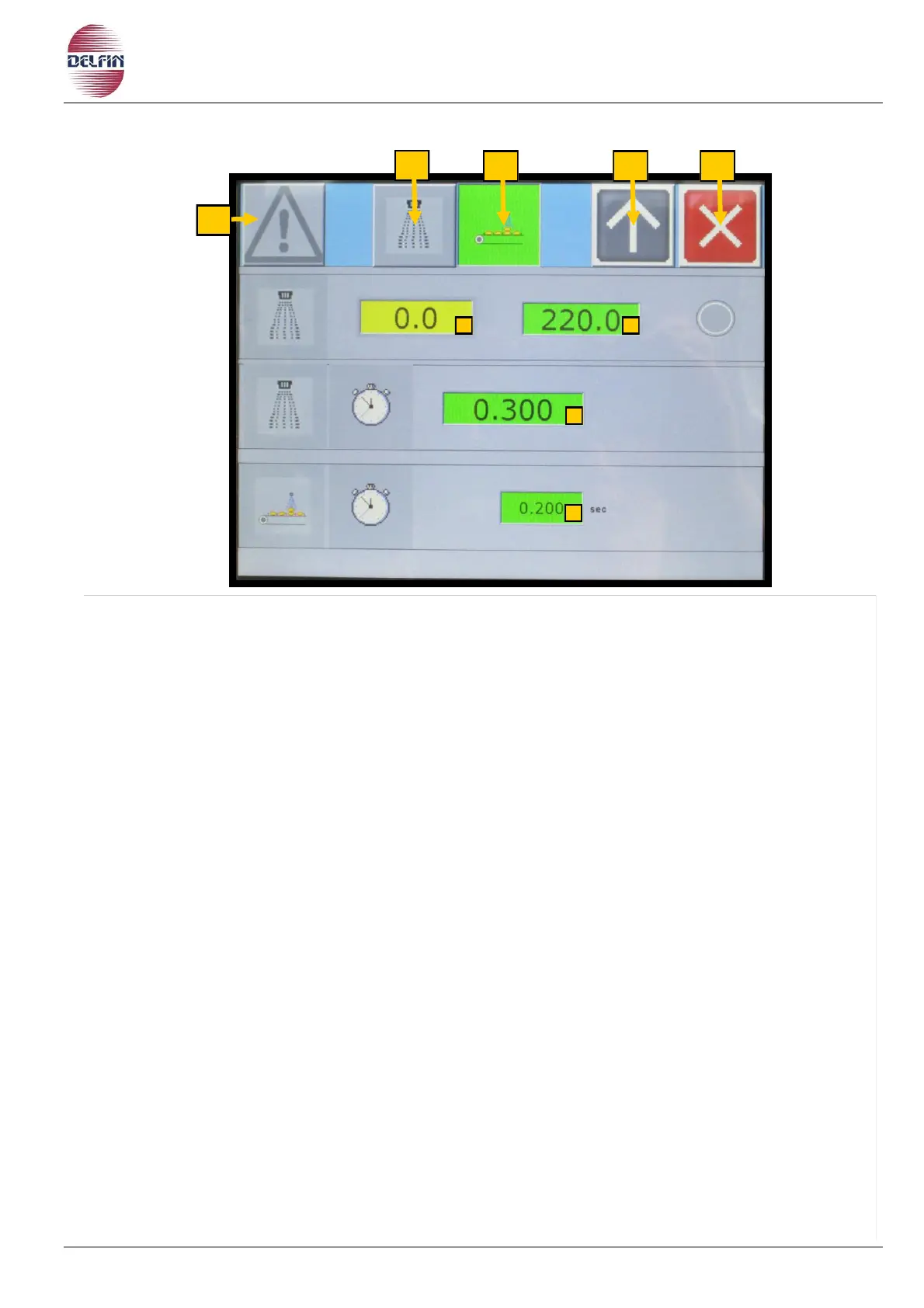 9) Button to set the duration of the blowing device for double product removal.