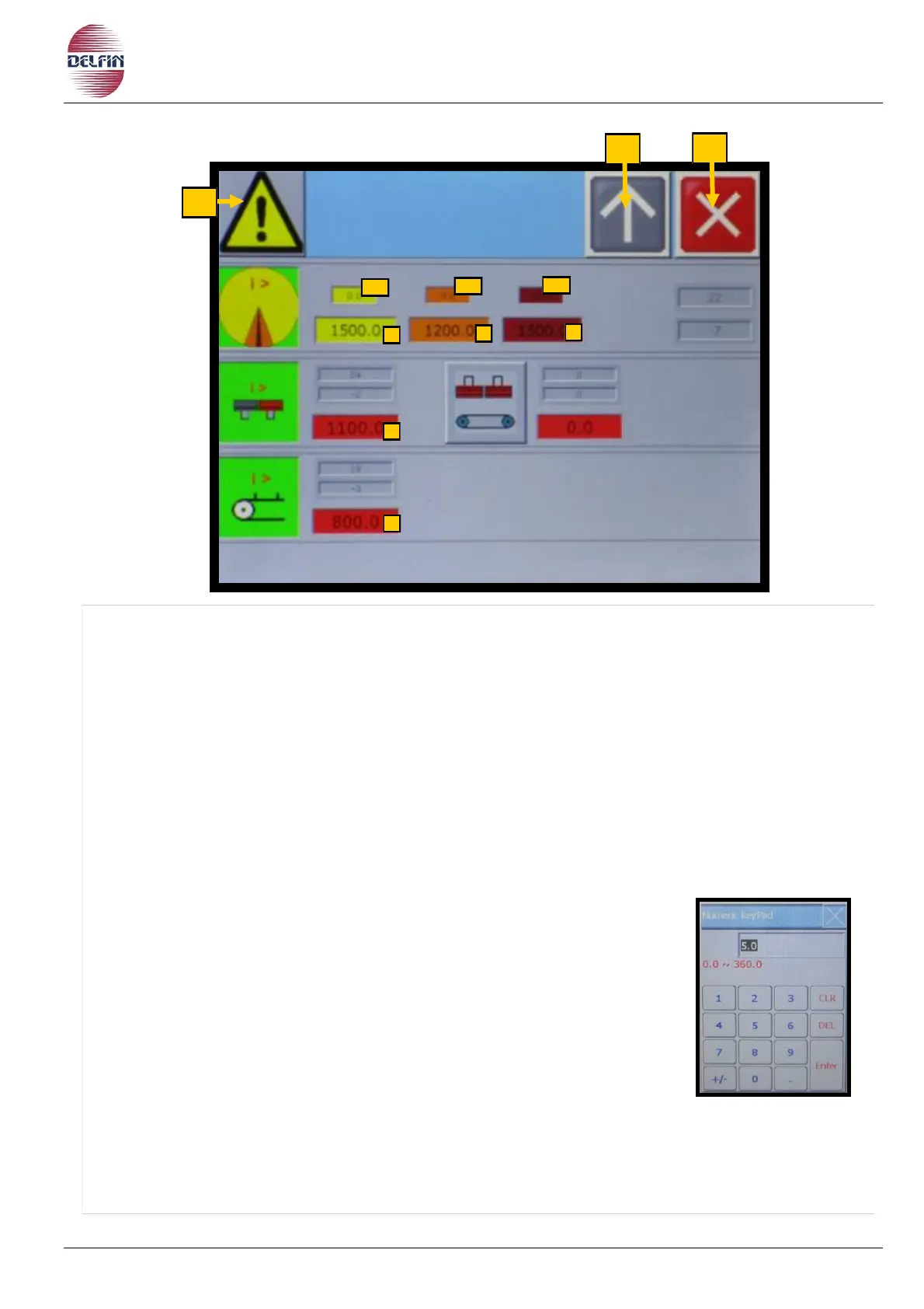 In the presence of active alarm the color of the triangle button is yellow.