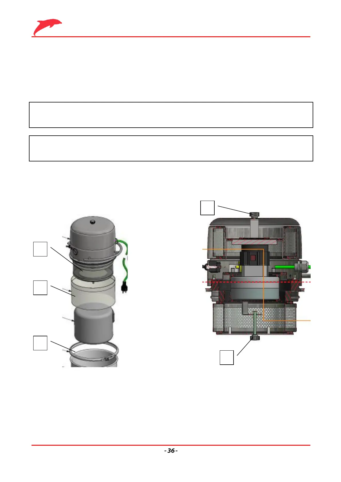 ➢ Lose the clamp (1) and remove the bag filter (2), then remove the absolute filter (3). To