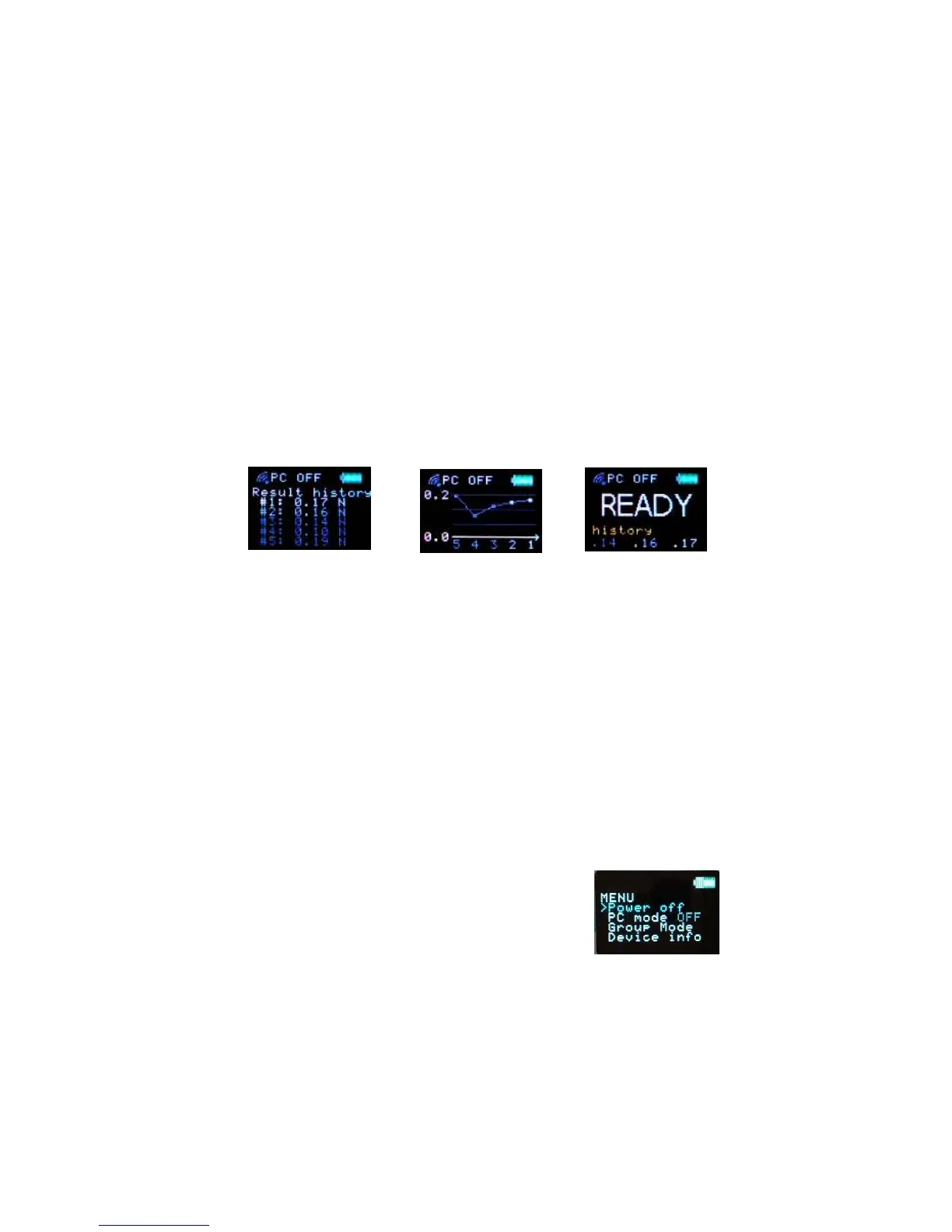 When the SkinFibroMeter is at the READY stage, the measurement history can