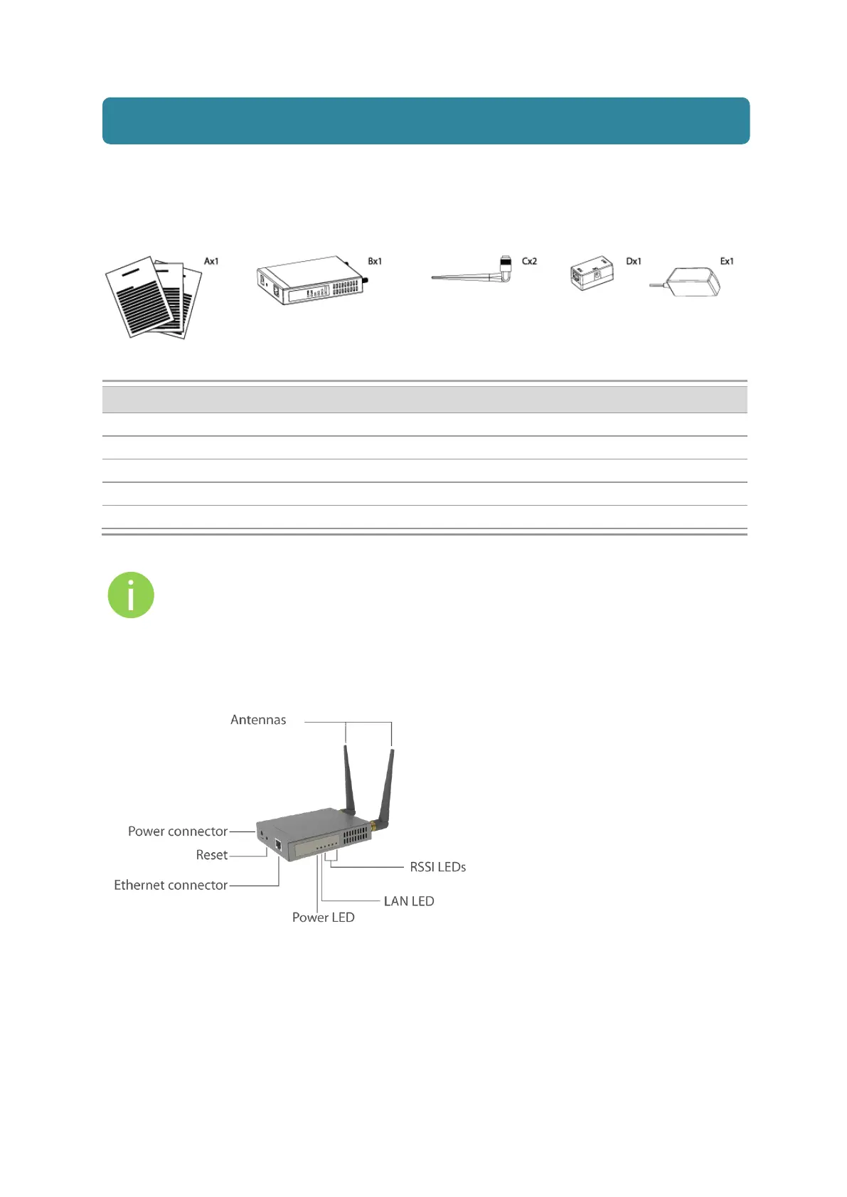 6 LEDs: power LED, LAN activity LED and 4 LEDs for device RSSI level indication