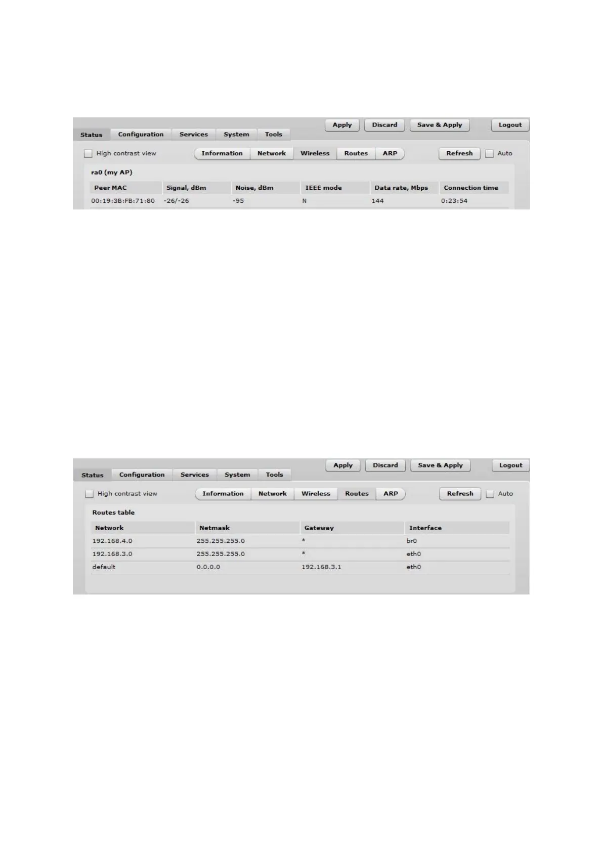tables with information about connected wireless clients will be displayed.