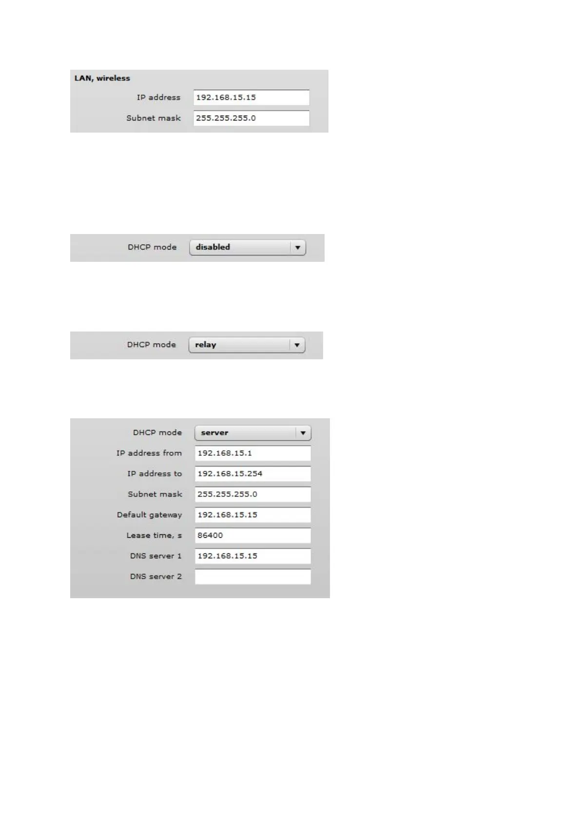 DHCP mode – choose server to enable DHCP server on LAN interface.