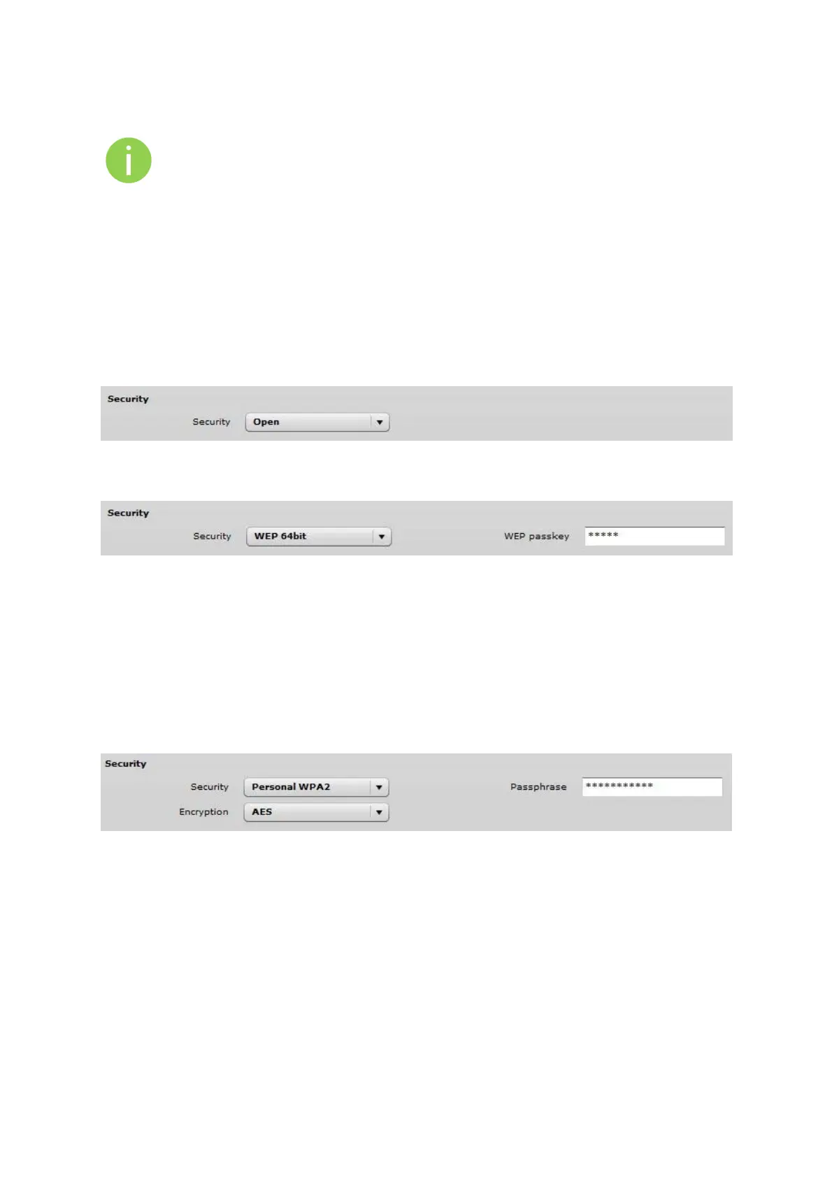 WEP passkey – specify the passkey, for the chosen WEP security:
